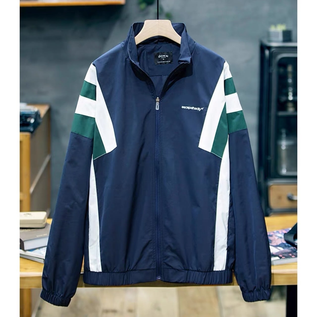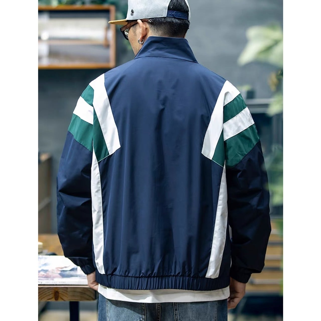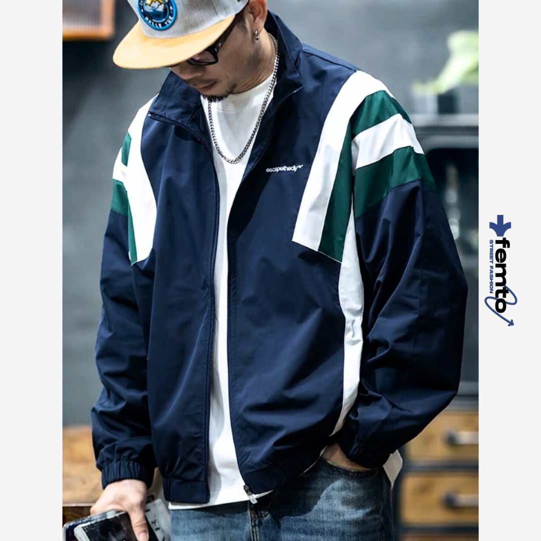 カラーブロックデザインが目を惹くスタンドカラーのトラックジャケット。