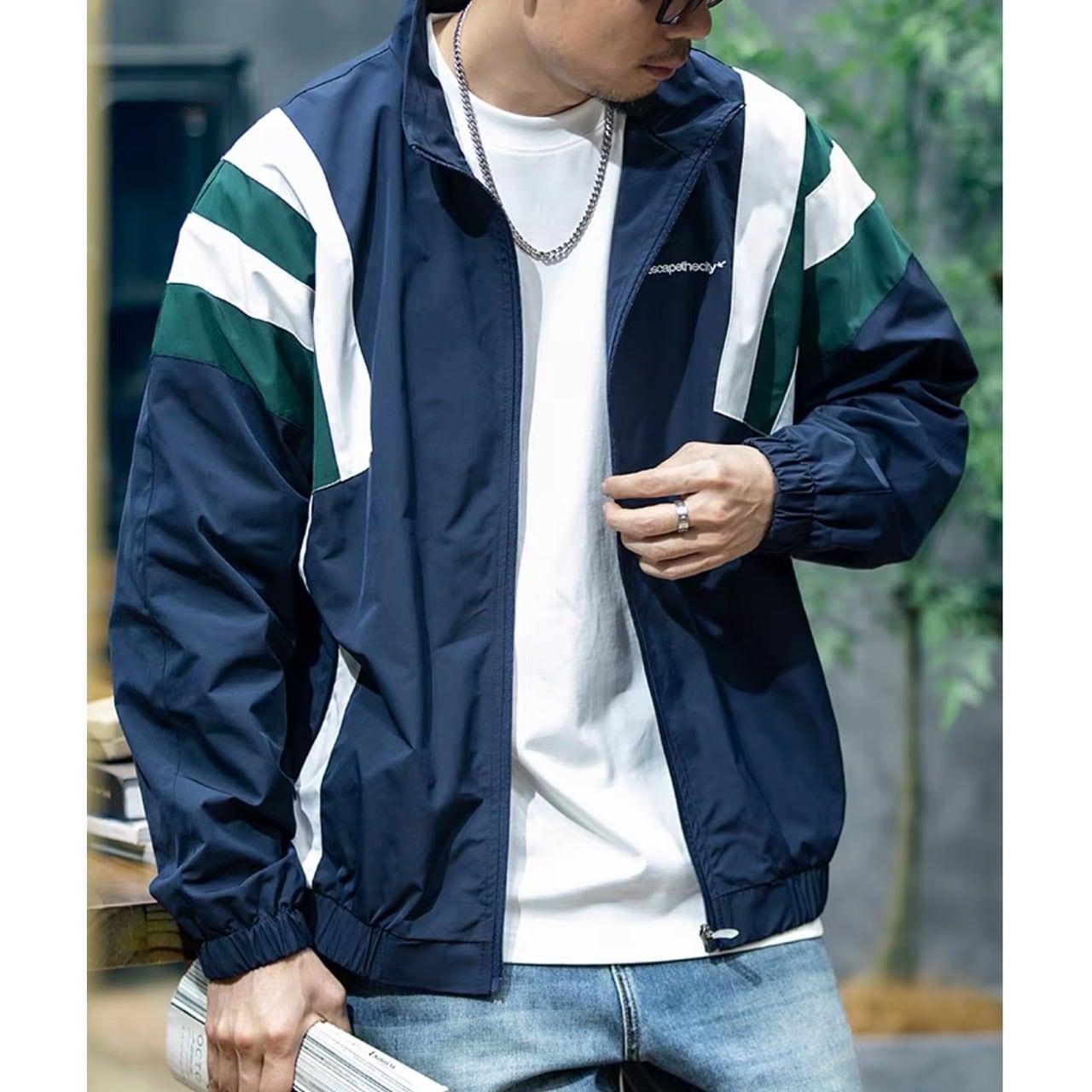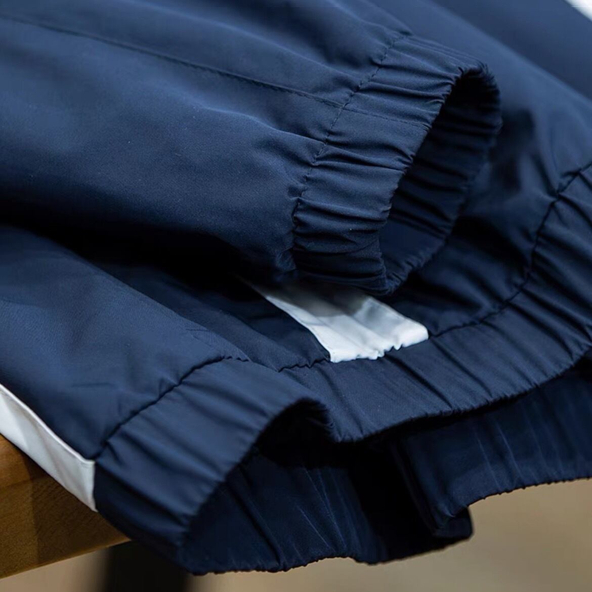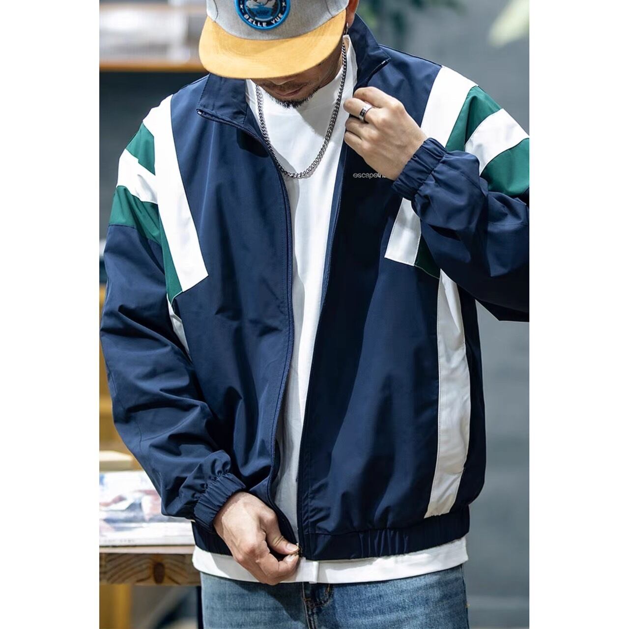 カラーブロックデザインが目を惹くスタンドカラーのトラックジャケット。