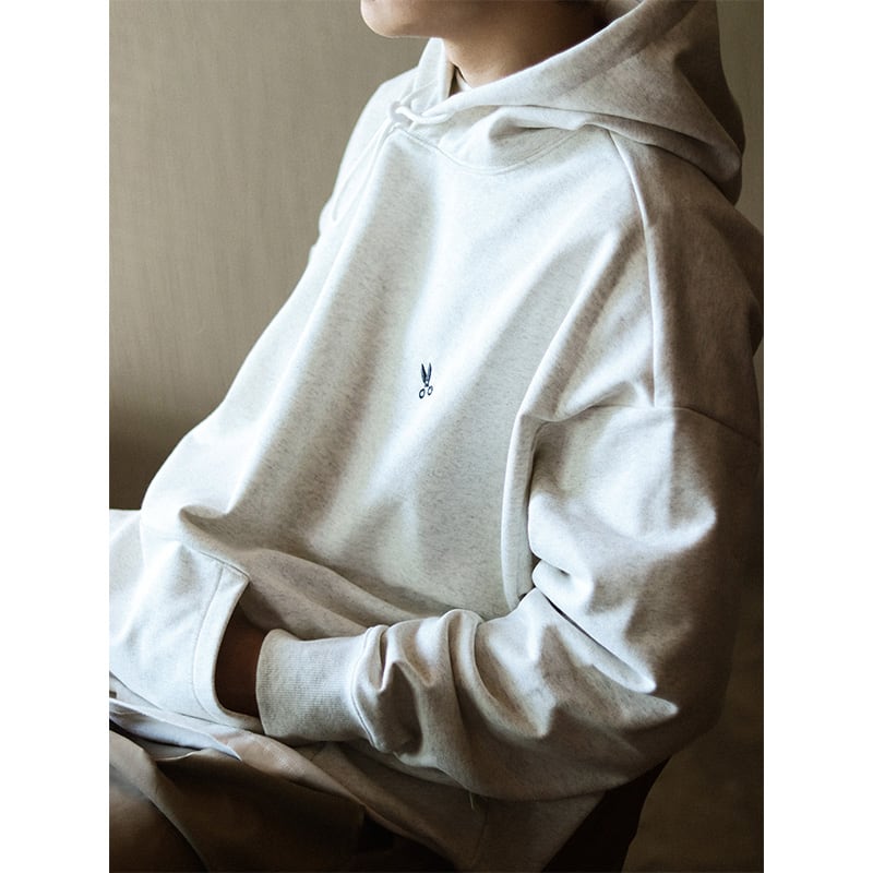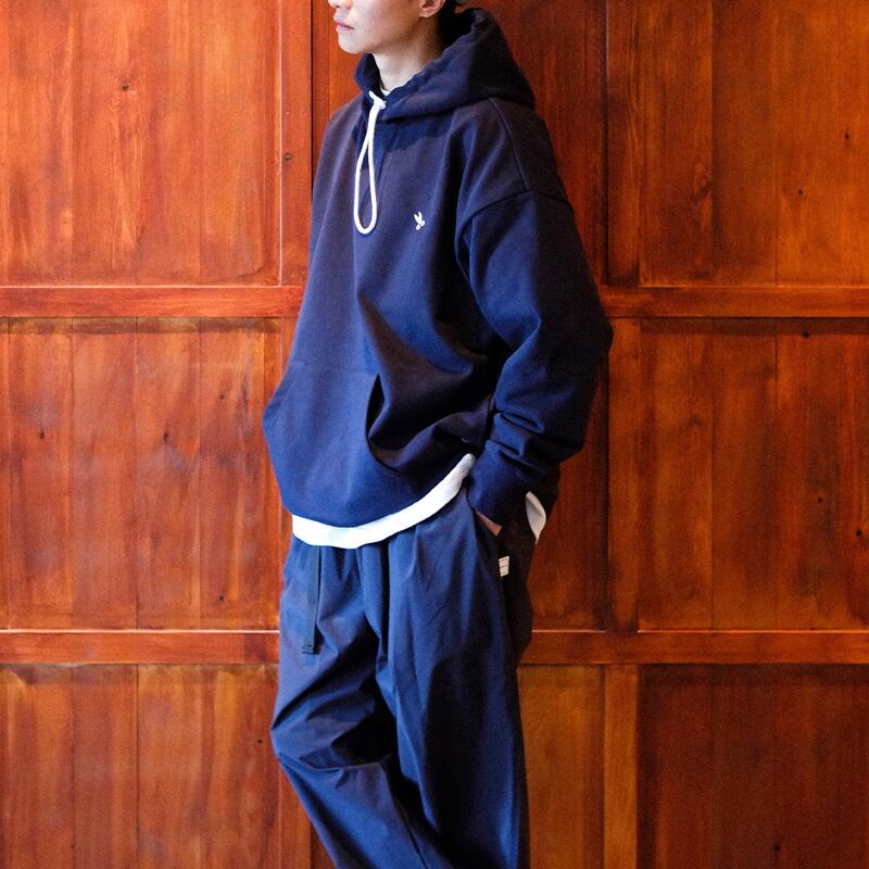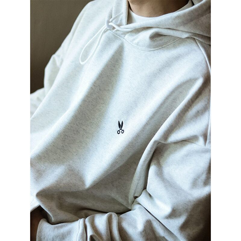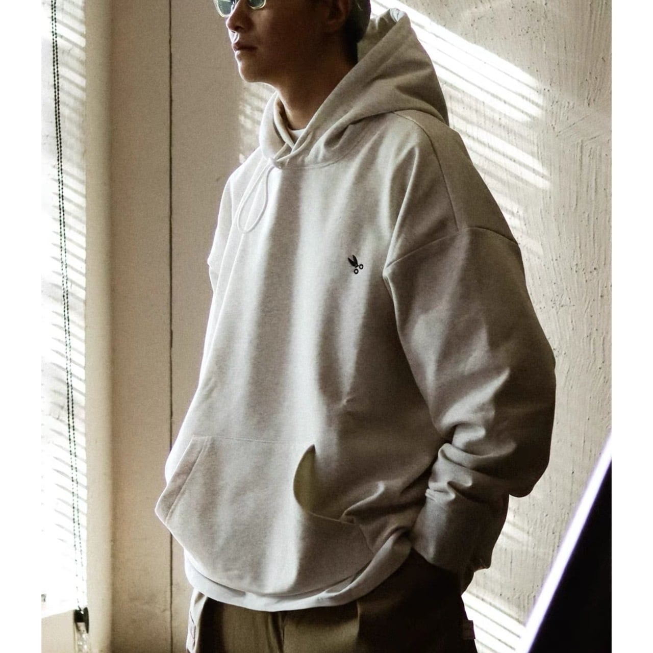 バックプリントのデザインがアクセントになり、シンプルながらも個性を演出するパーカー。
