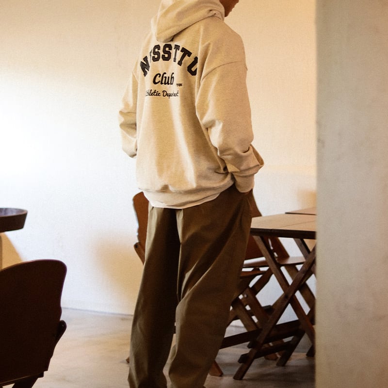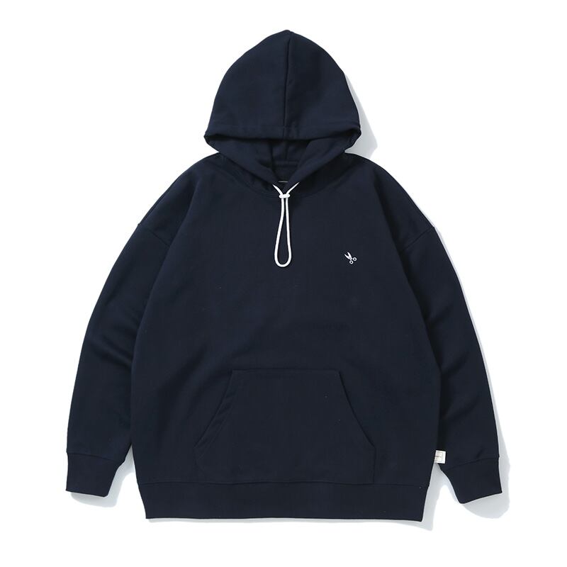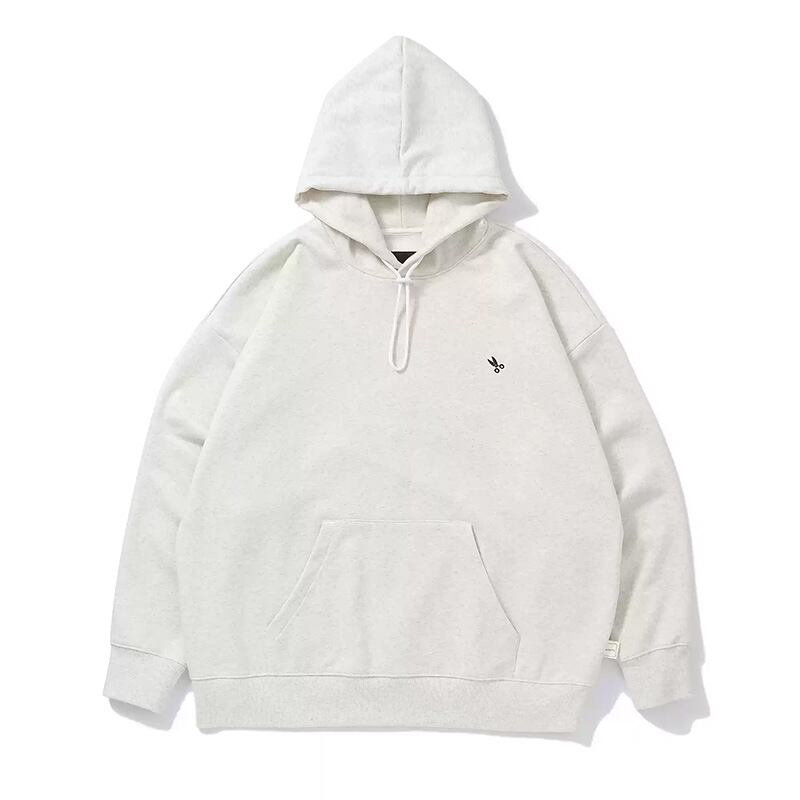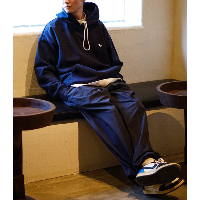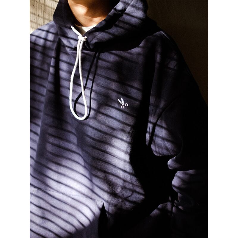 バックプリントのデザインがアクセントになり、シンプルながらも個性を演出するパーカー。