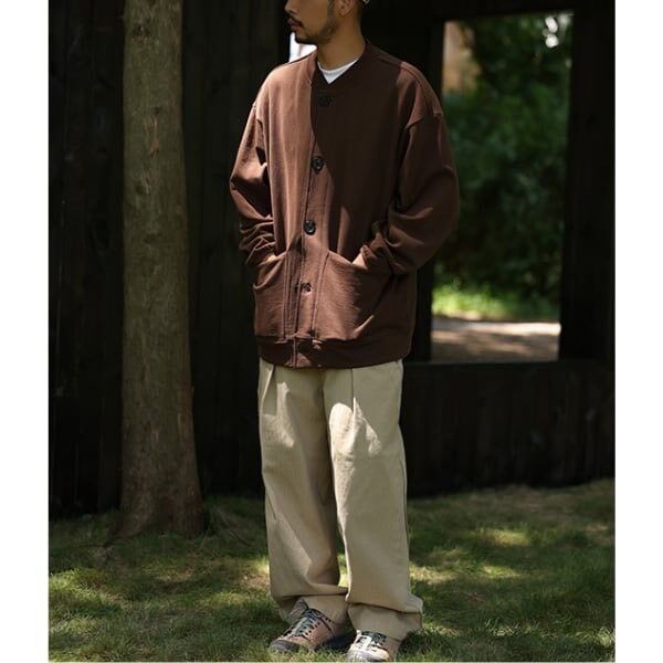 カジュアルながらも清潔感があり、様々なシーンで活躍するスウェットカーディガン。