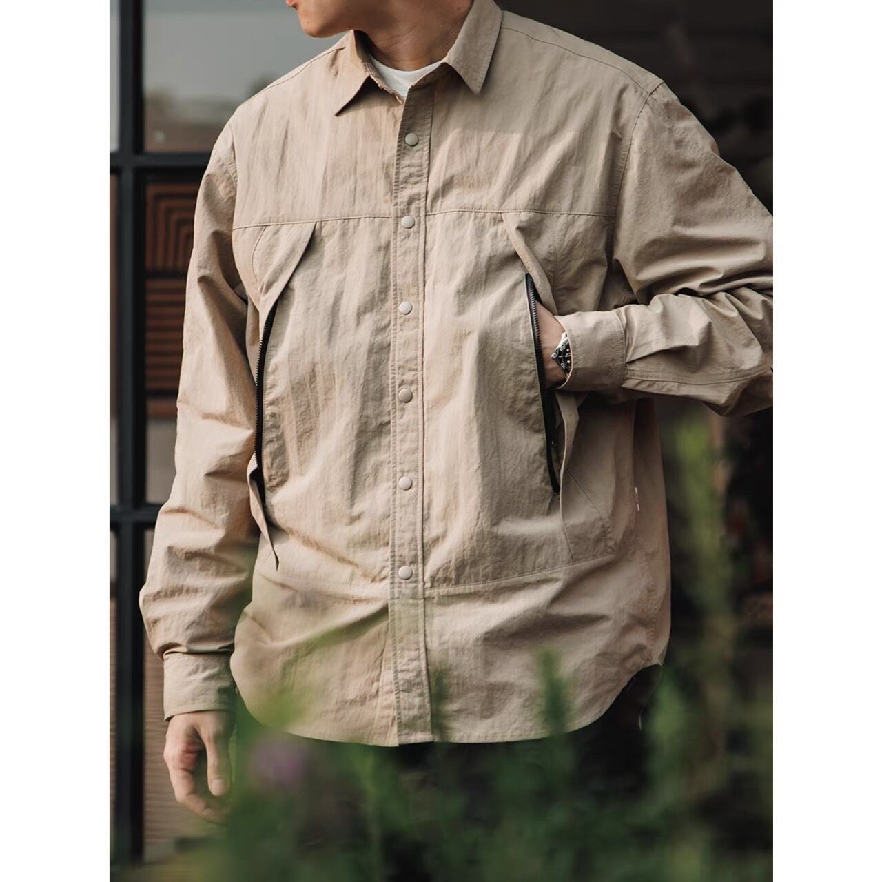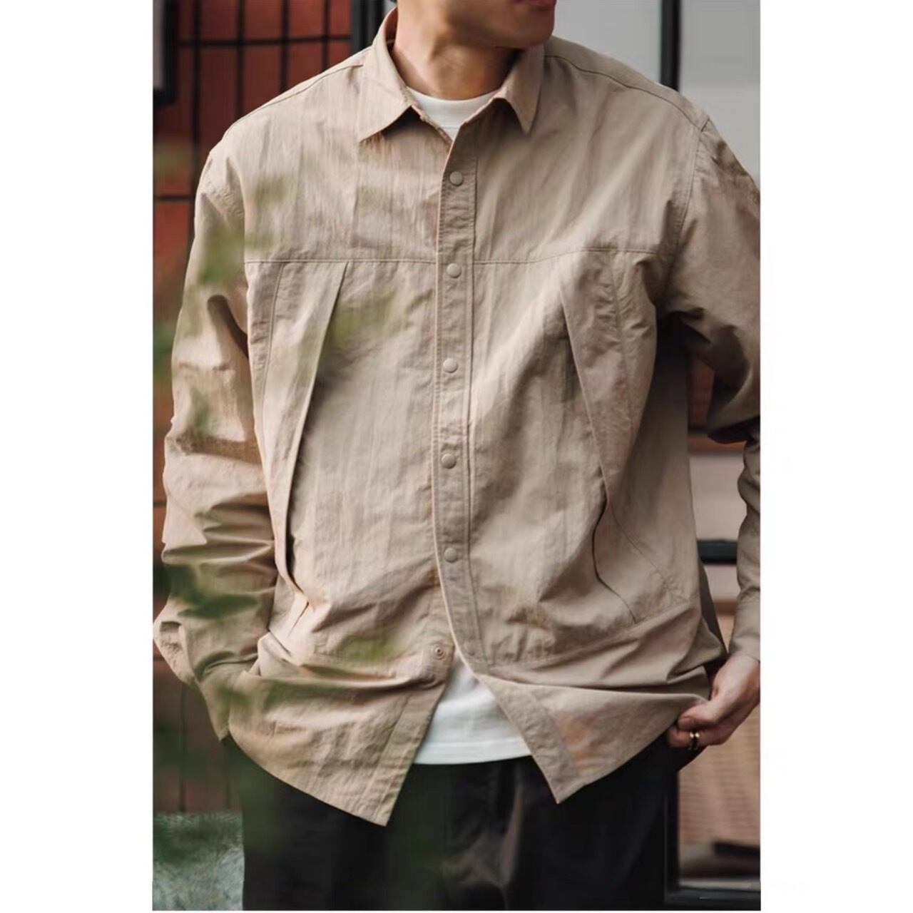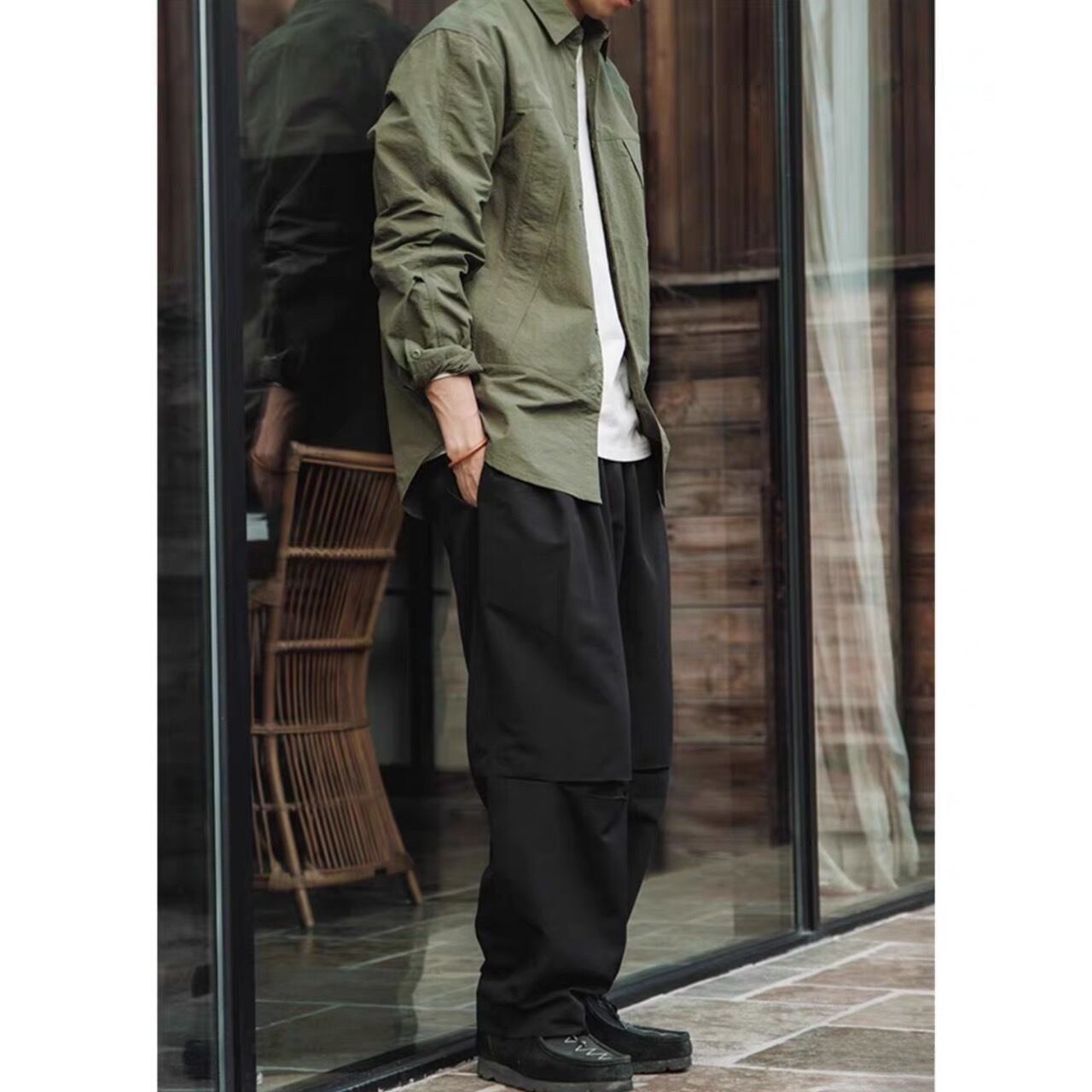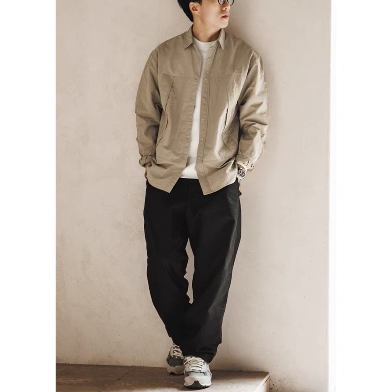 ボタンフロントシャツのボックスシルエットが、着こなしにこなれた雰囲気をプラスしてくれる一着。