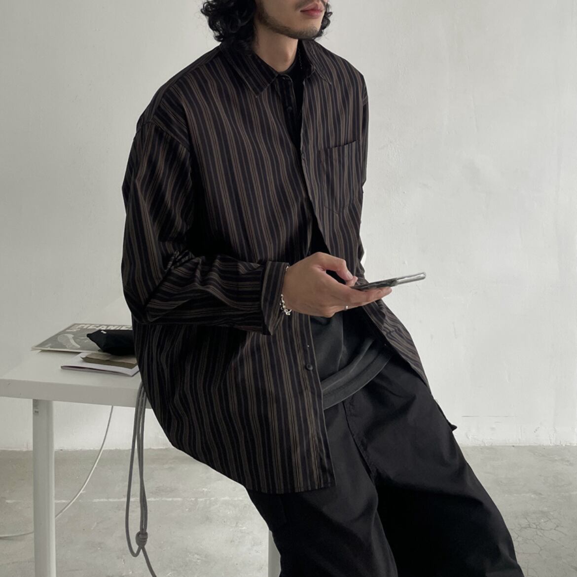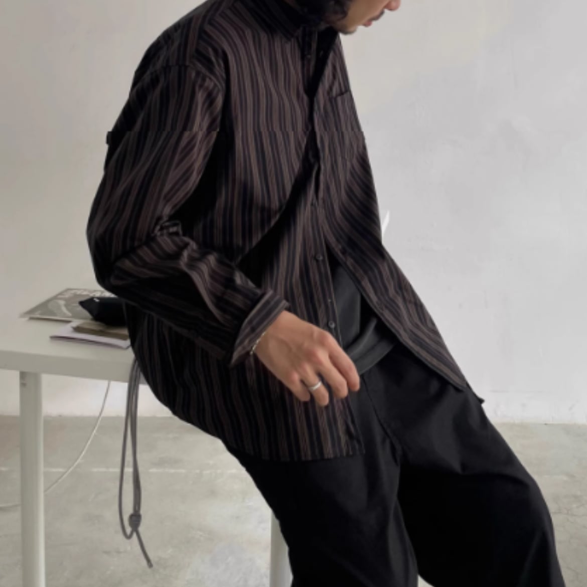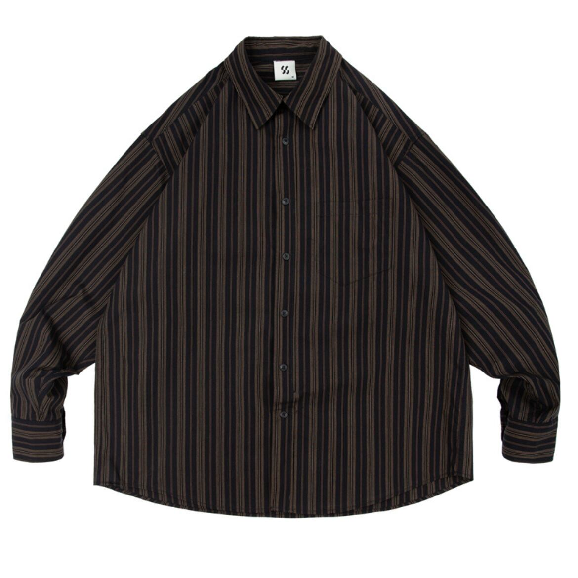 ストライプ柄のオーバーサイズ長袖シャツ。