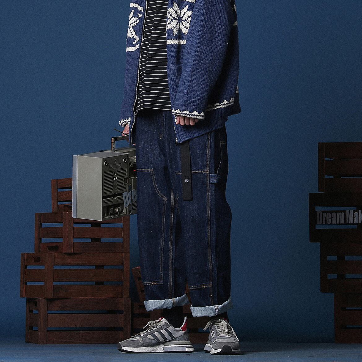ワークテイストのデザインが、カジュアルスタイルにこなれ感をプラスするデニムパンツ。