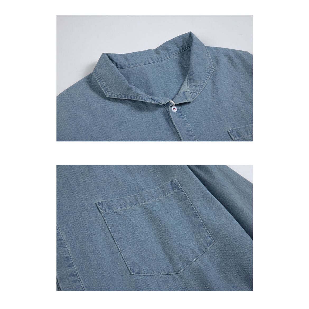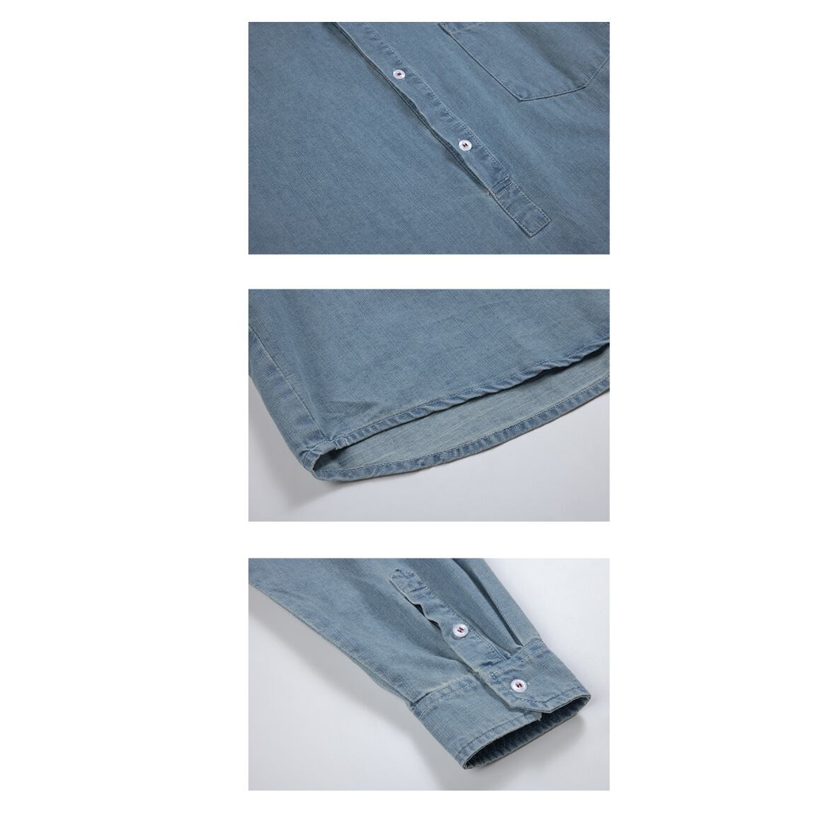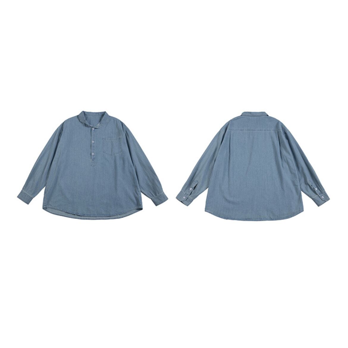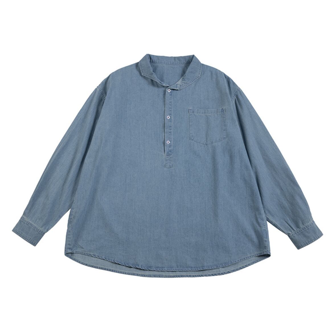 シンプルなデザインが魅力のデニムシャツ。