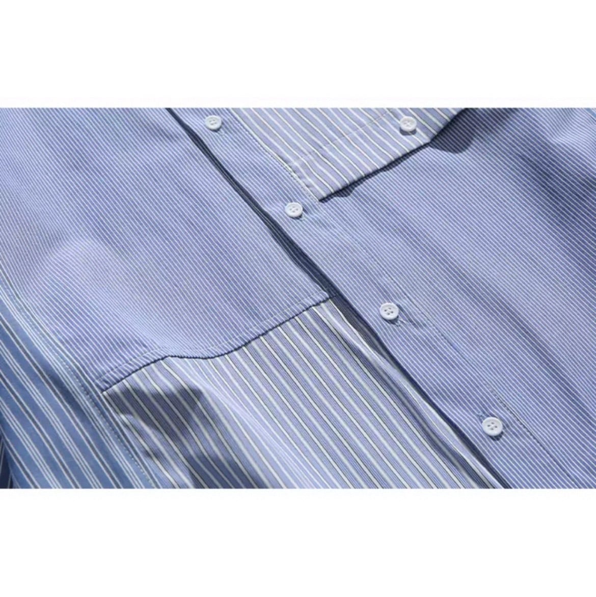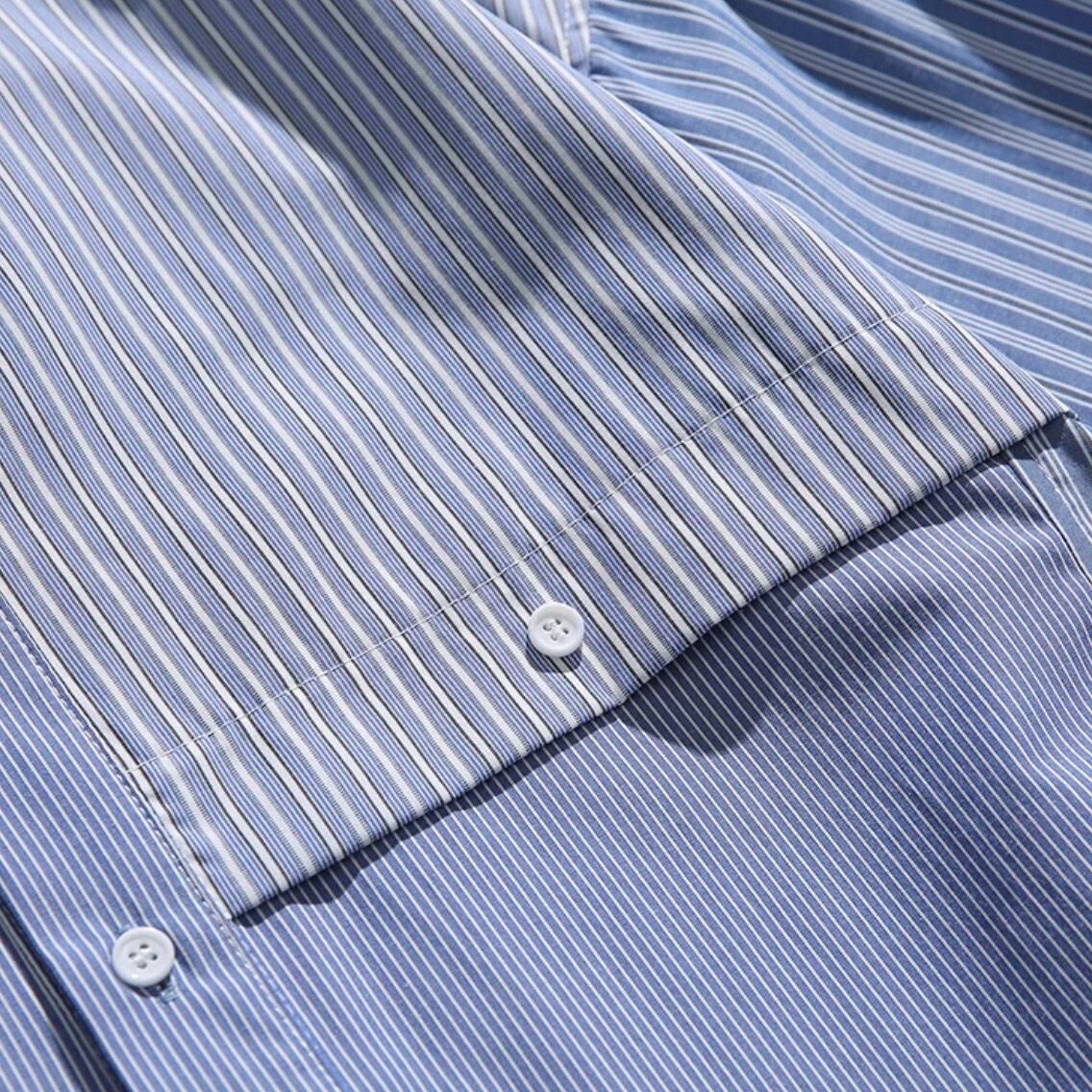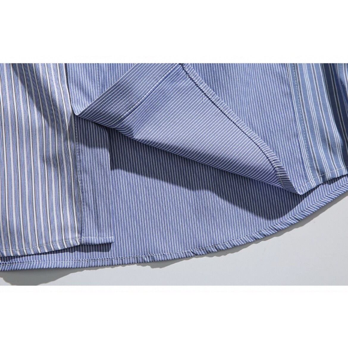 異なるストライプ柄の生地を組み合わせたデザインが、着こなしに個性をプラスします。
