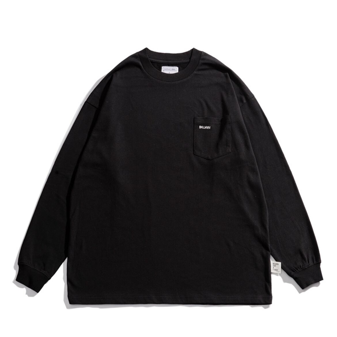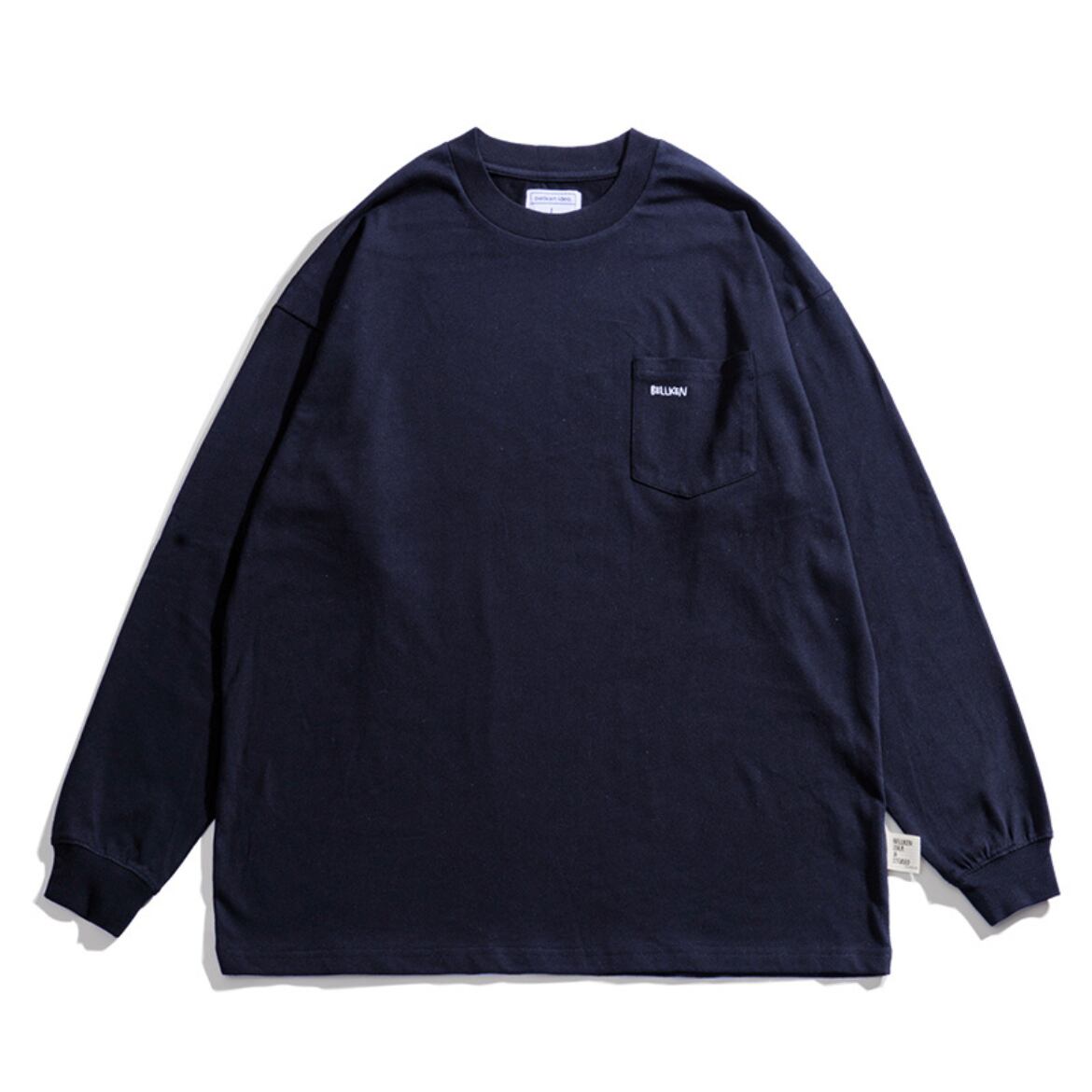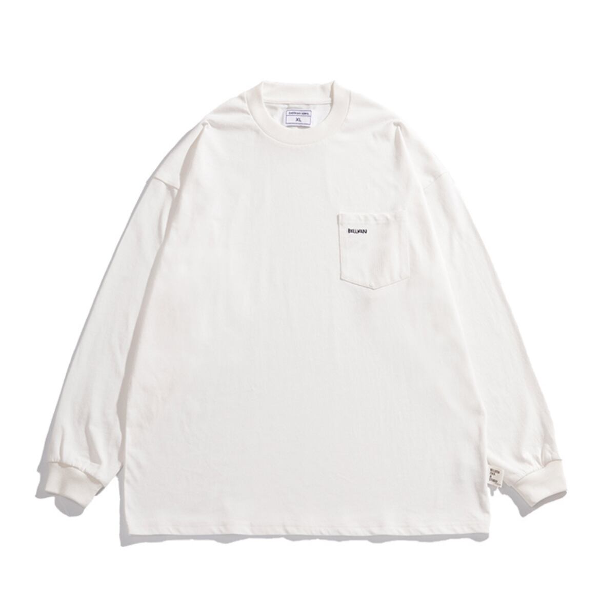左胸にワンポイントロゴをあしらったクルーネックロングスリーブTシャツ。