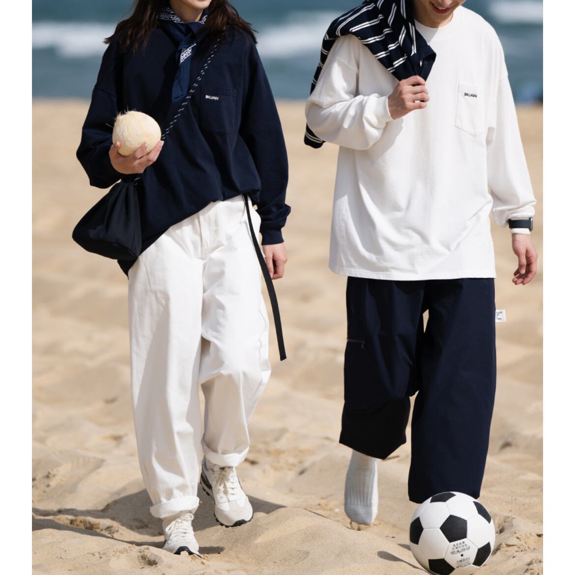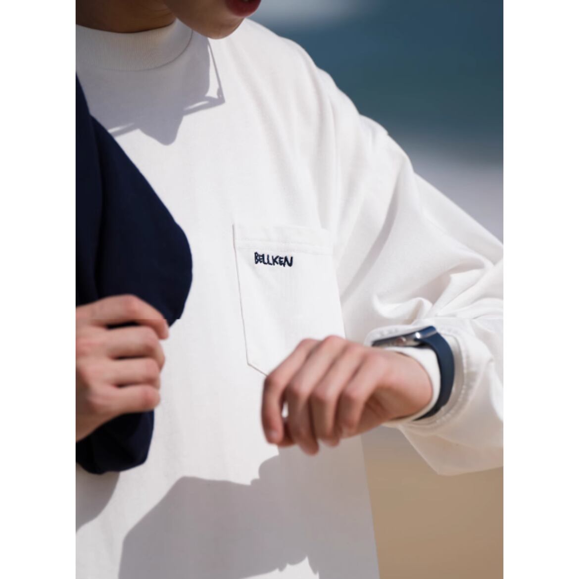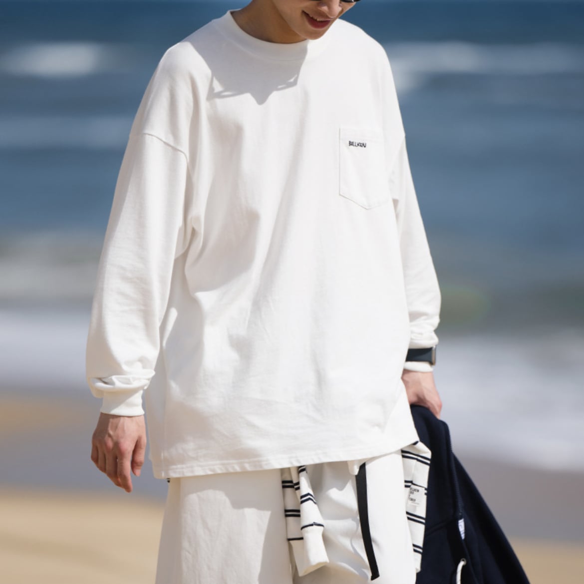 左胸にワンポイントロゴをあしらったクルーネックロングスリーブTシャツ。
