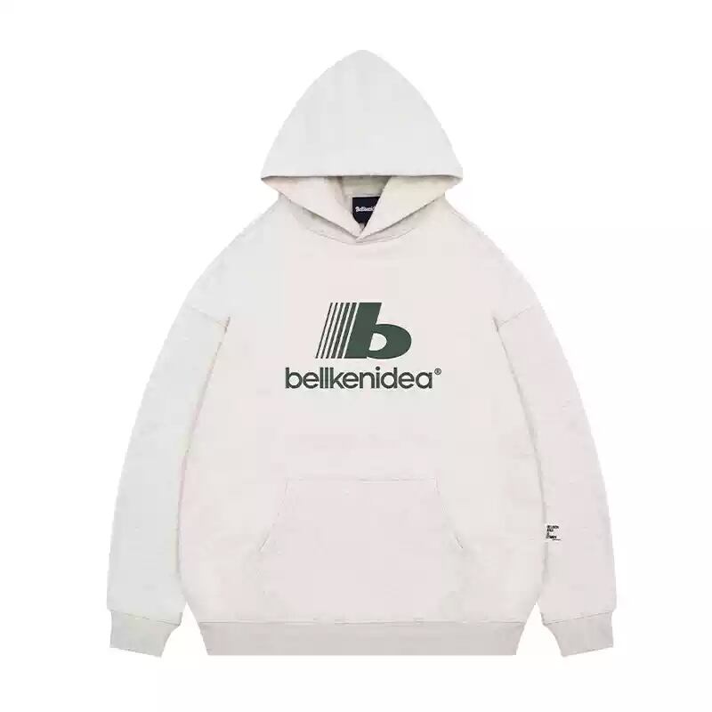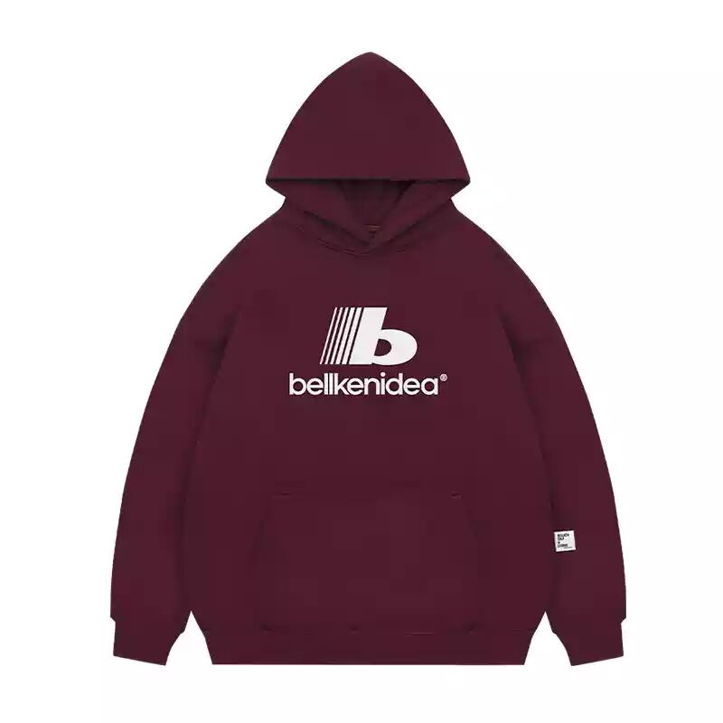 フロントロゴとポケット付きのフードパーカー。