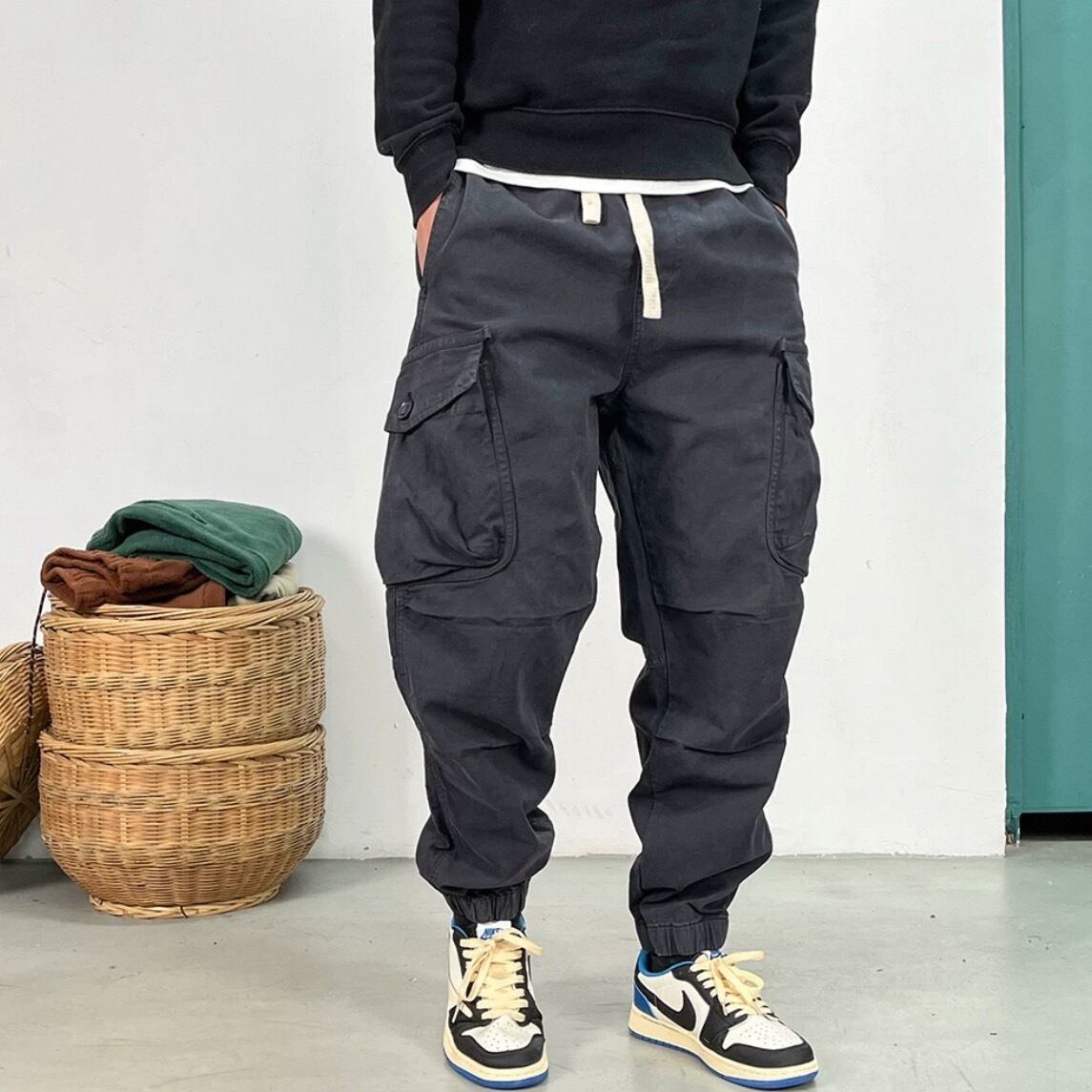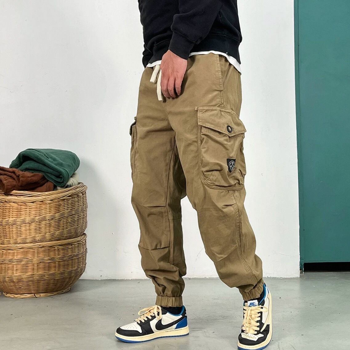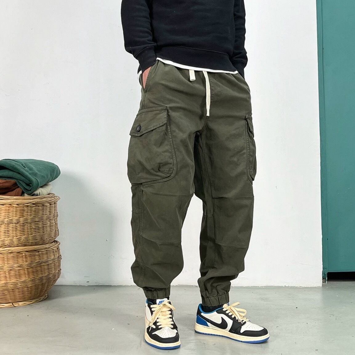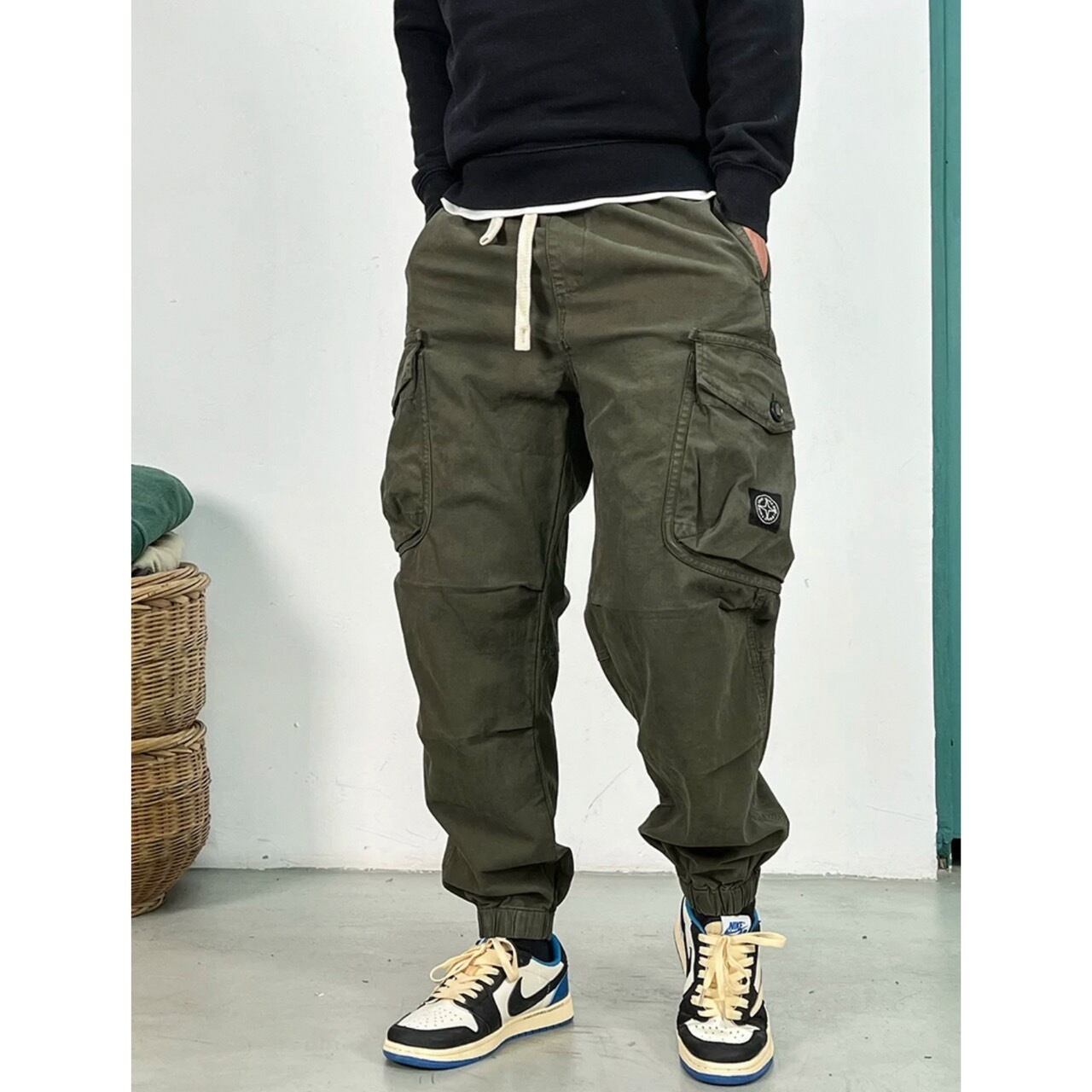 スポーティなデザインとミリタリーテイストを融合させたクロップド丈ジョガーパンツ。