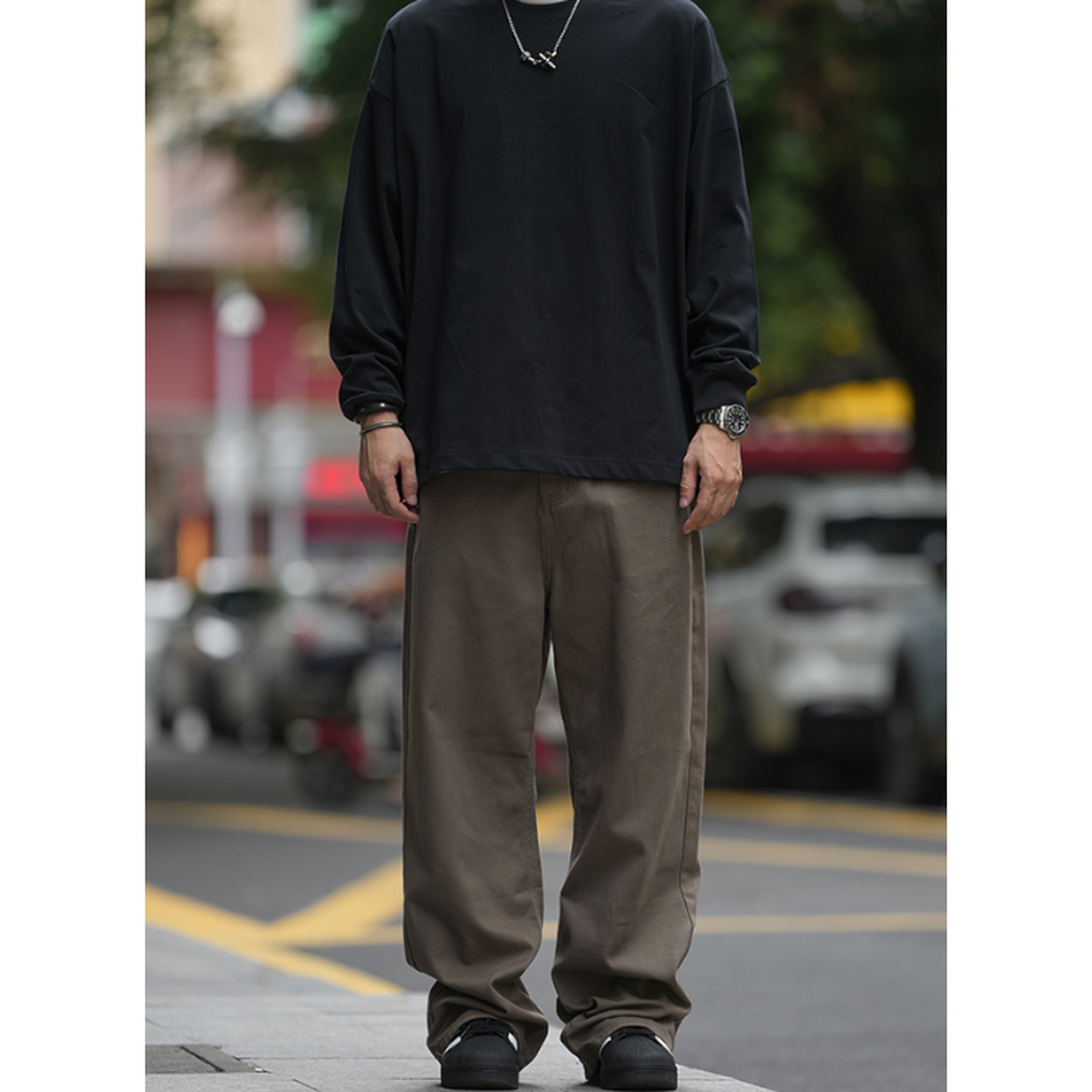 ゆったりとしたワイドシルエットが特徴のロングパンツ。