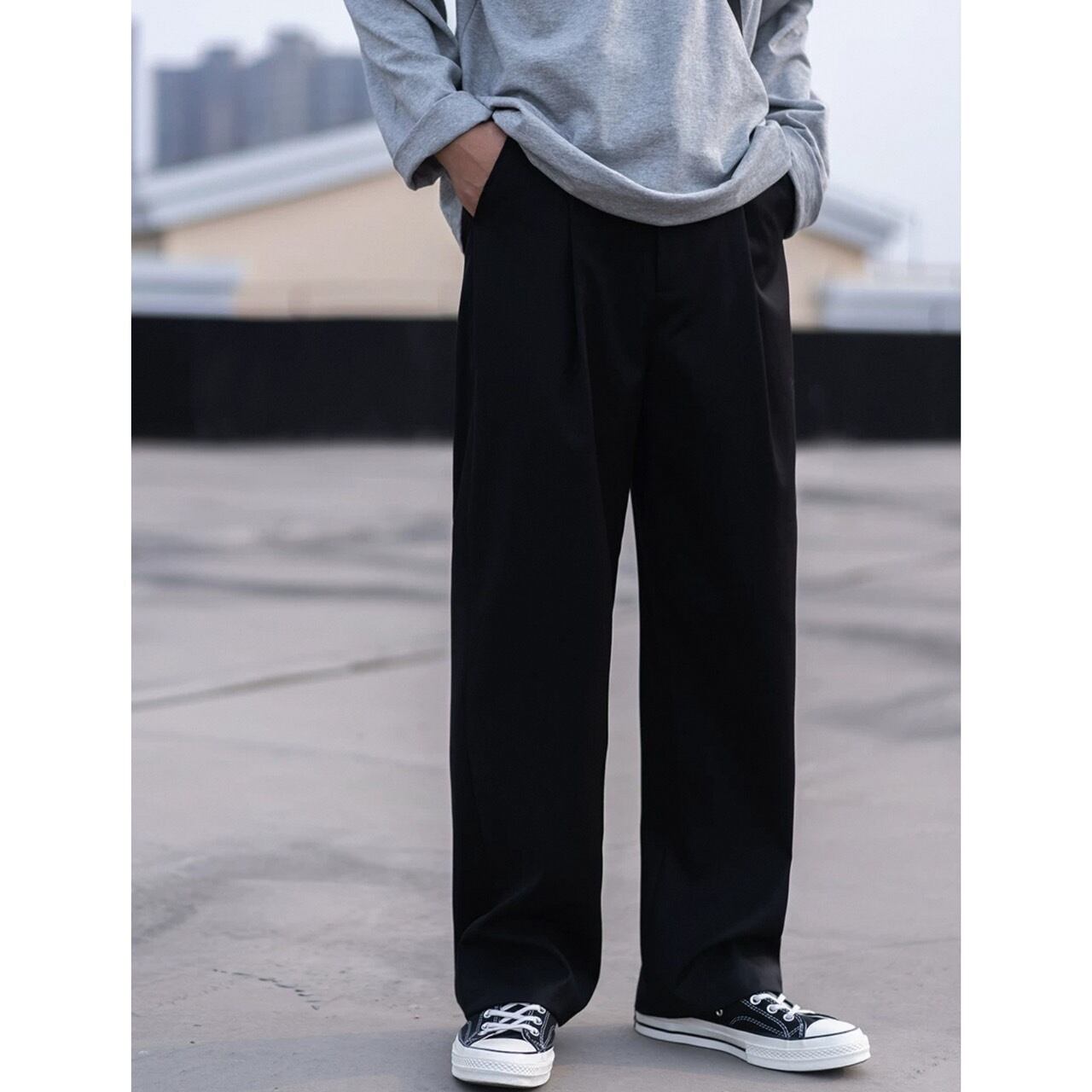 さりげなく入ったタックが美しい、リラックスワイドレッグパンツ。