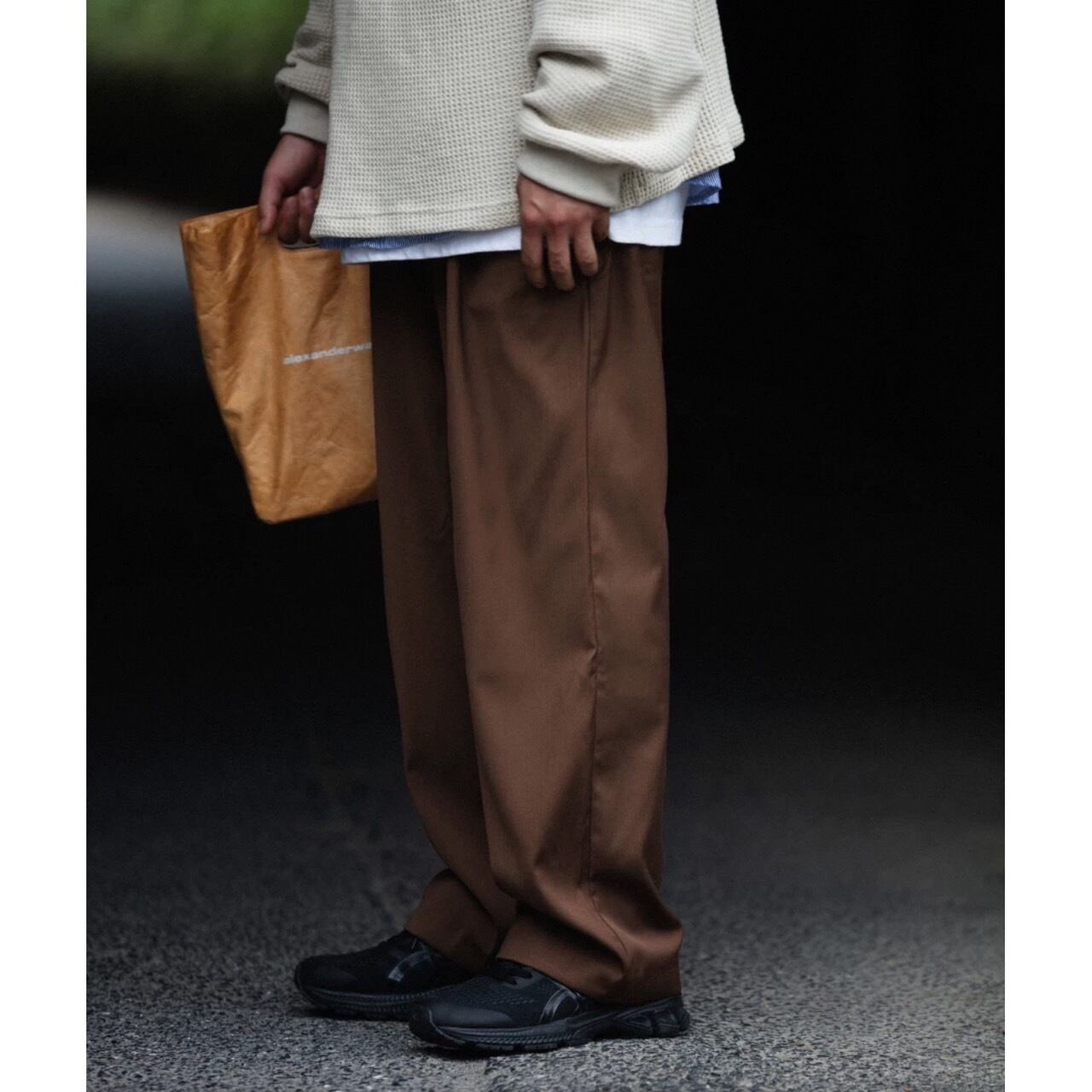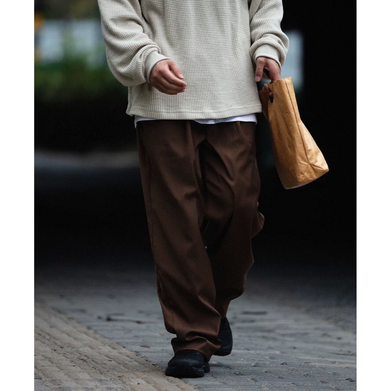 ゆったりとしたワイドレッグシルエットは、リラックス感がありながらも上品な印象に。