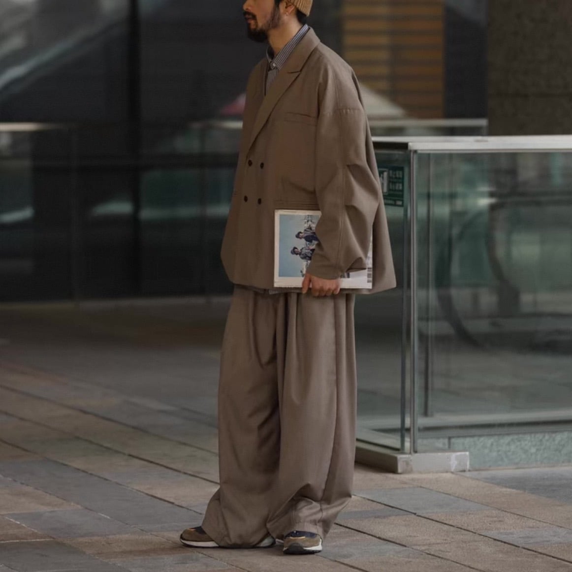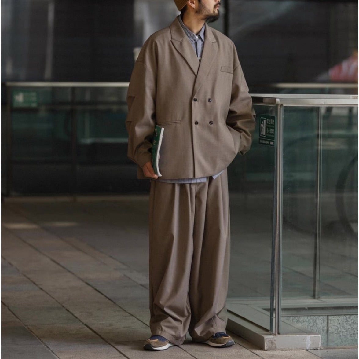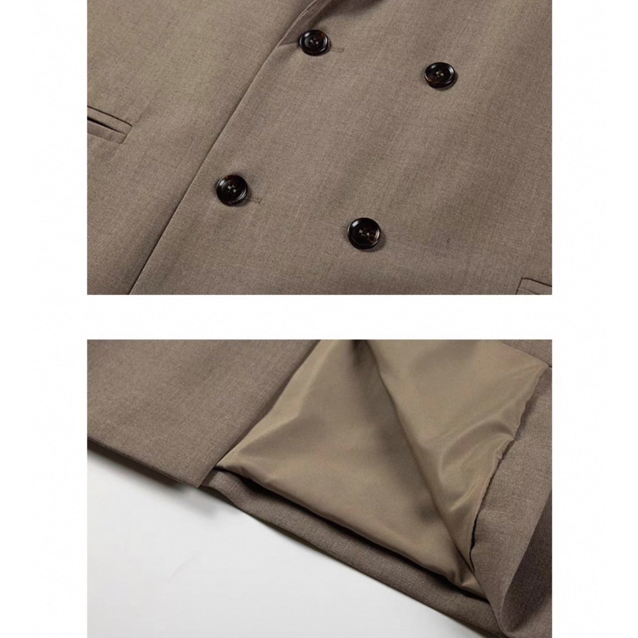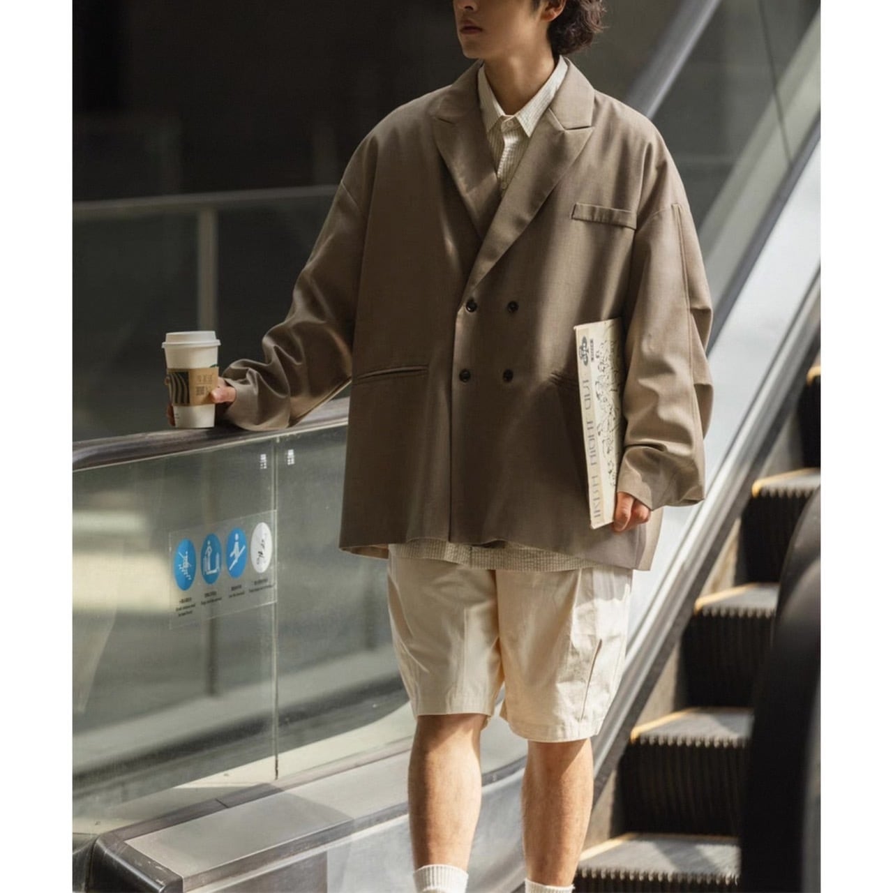 リラックス感のある着心地と、ダブルブレストのデザインが洗練された印象を与えるジャケット。
