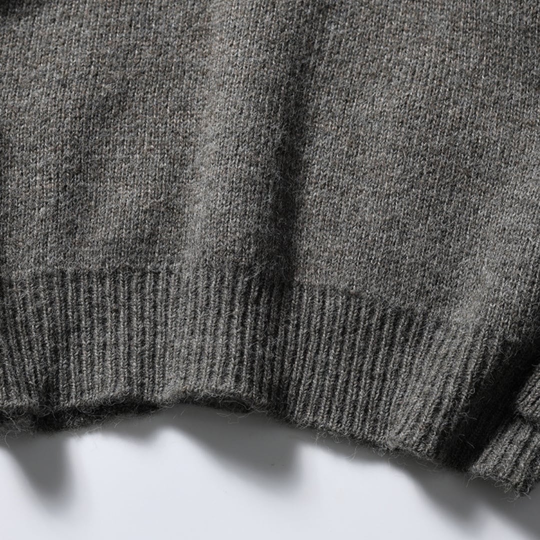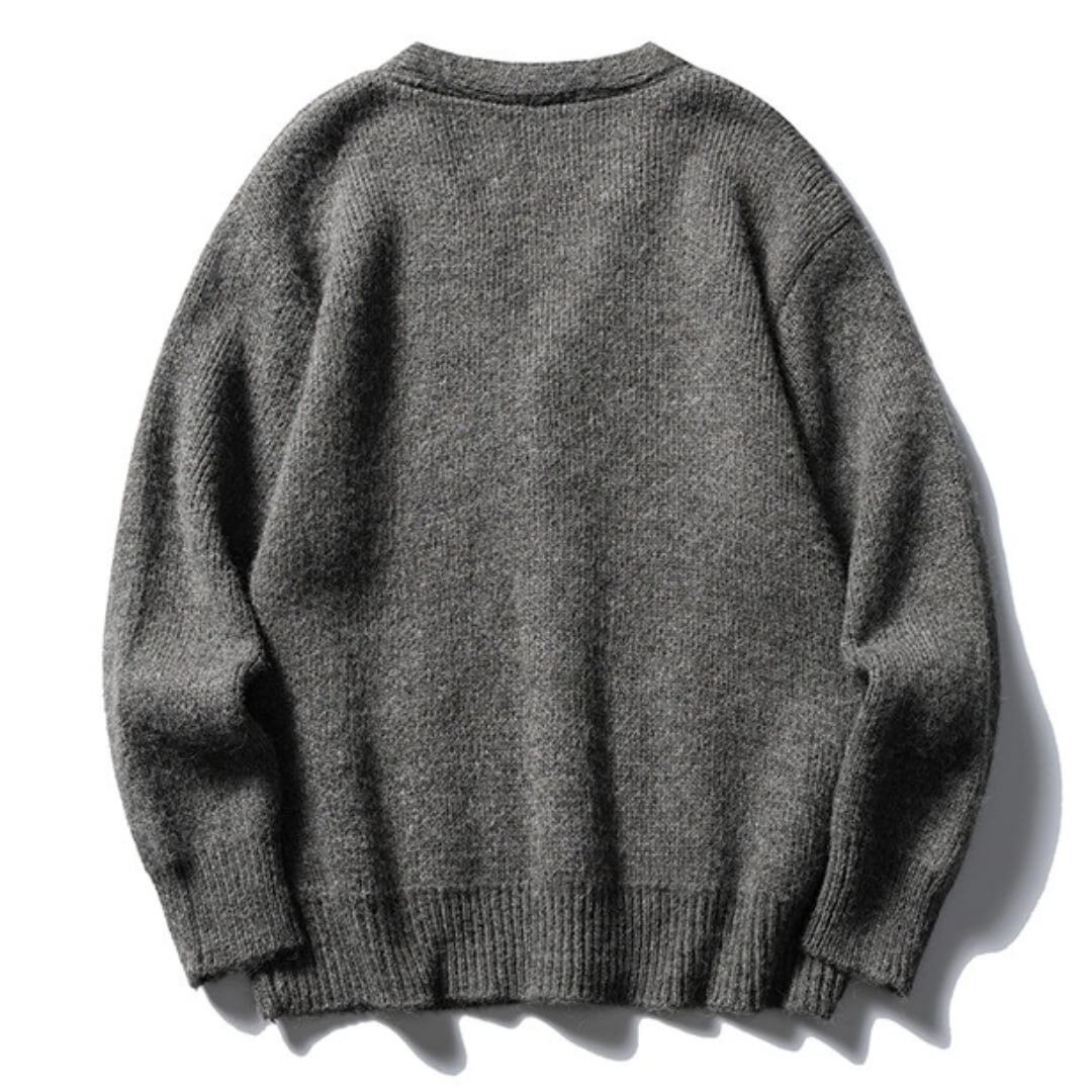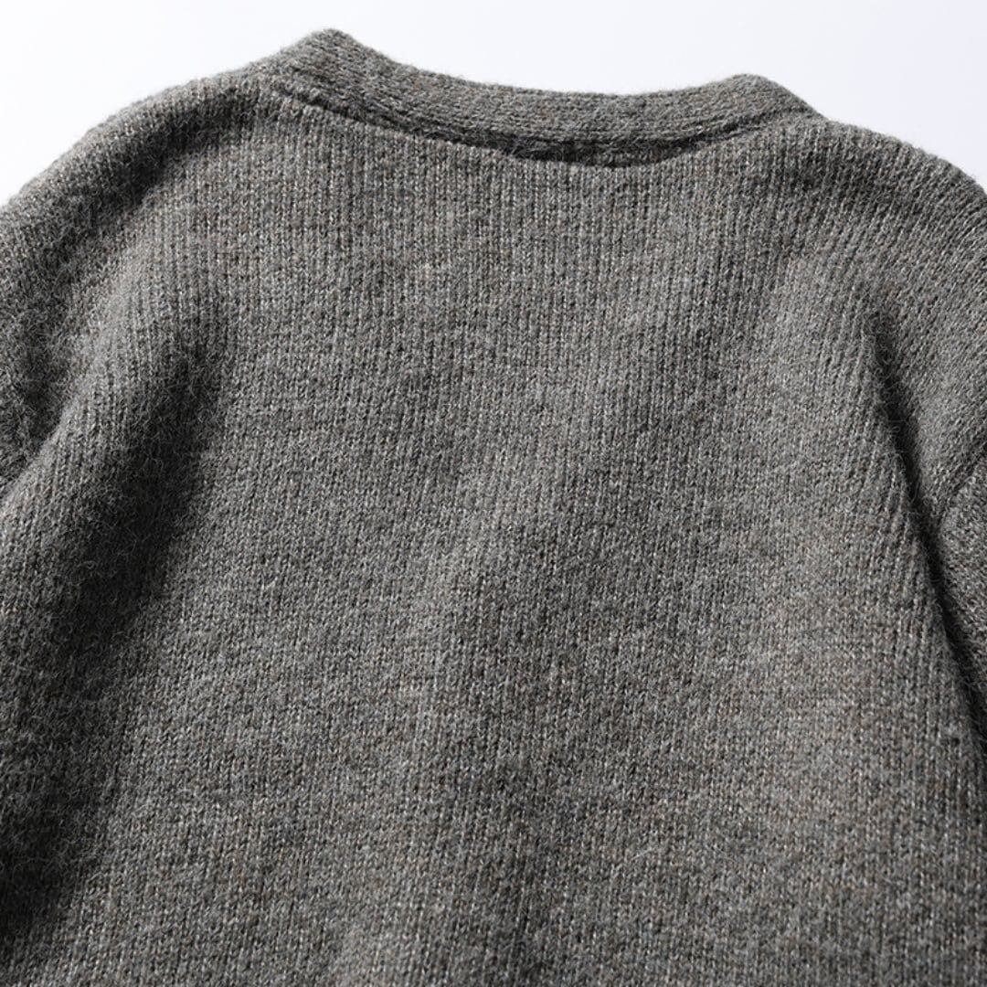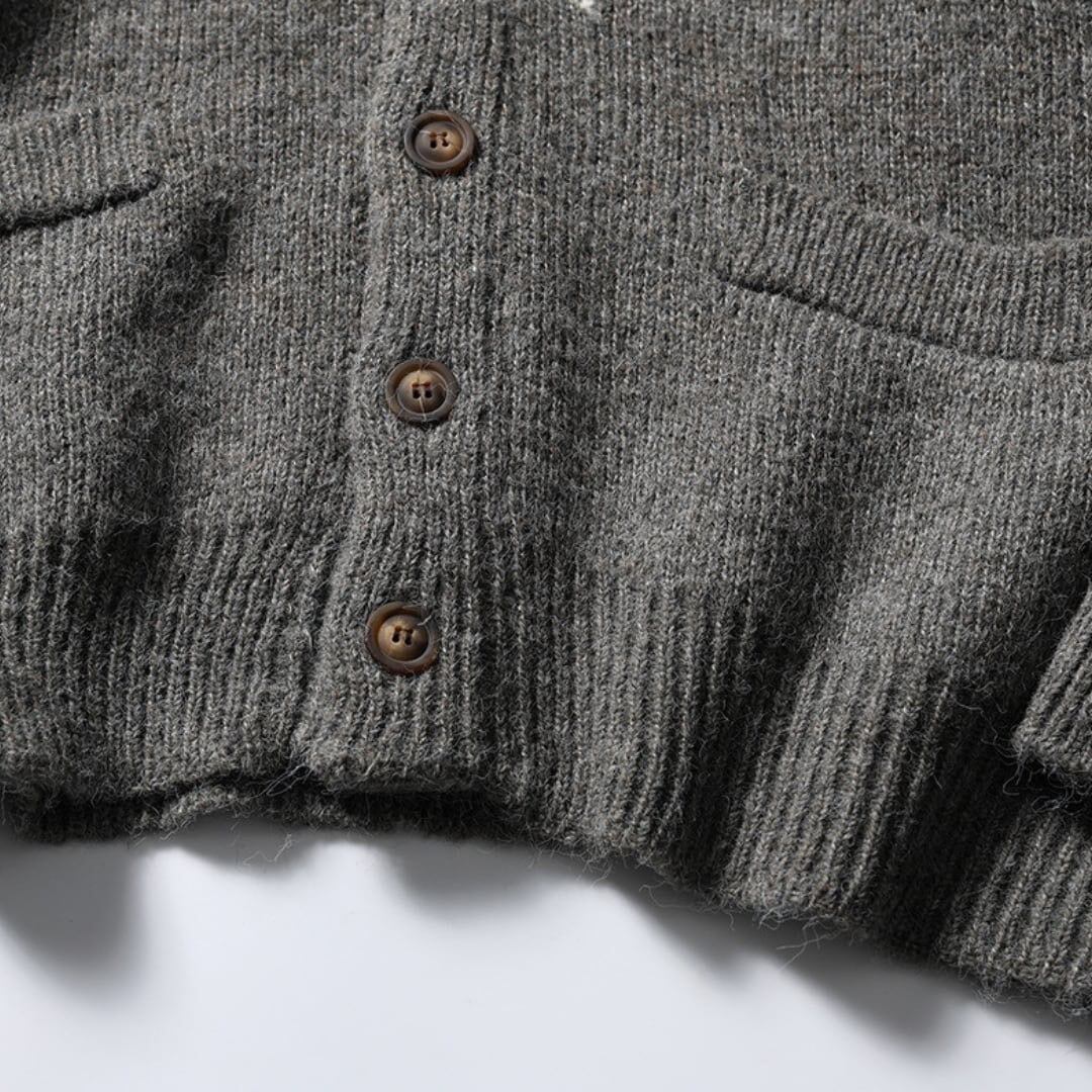 Vネックのボタンダウンニットカーディガン。