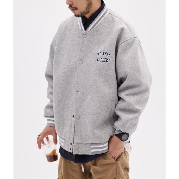 背面に大きくロゴが刺繍されたオーバーサイズのスウェットジャケット。