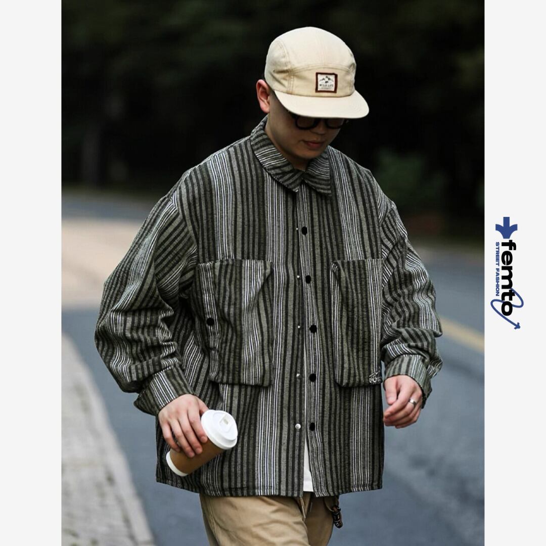 縦ストライプ柄がスタイルをすっきりと見せてくれる長袖シャツ。