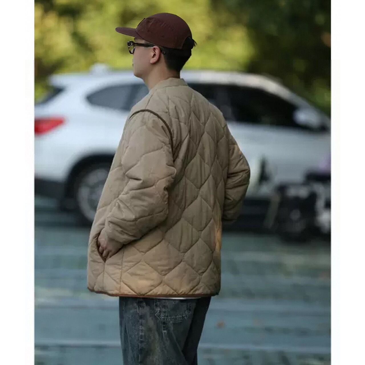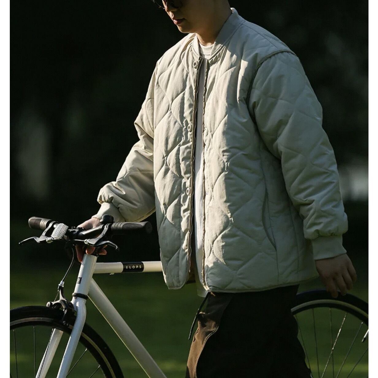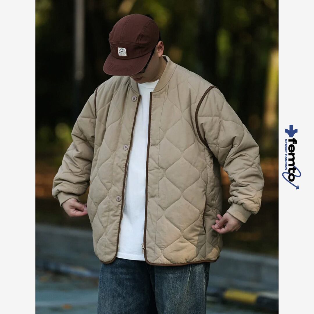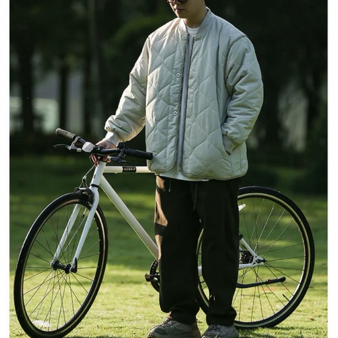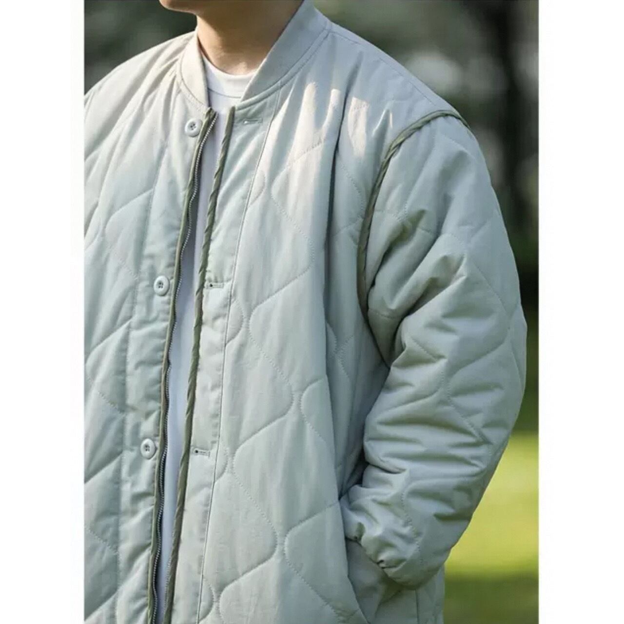 ダイヤモンドキルトが特徴的なスタンドカラーのキルティングジャケット。