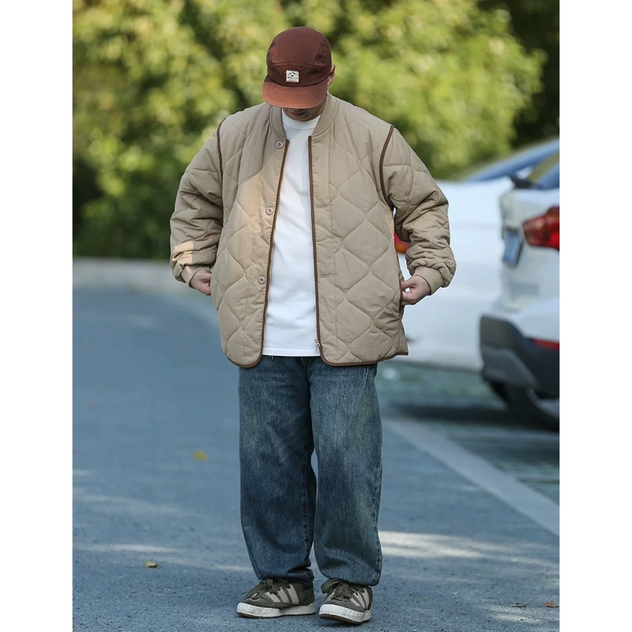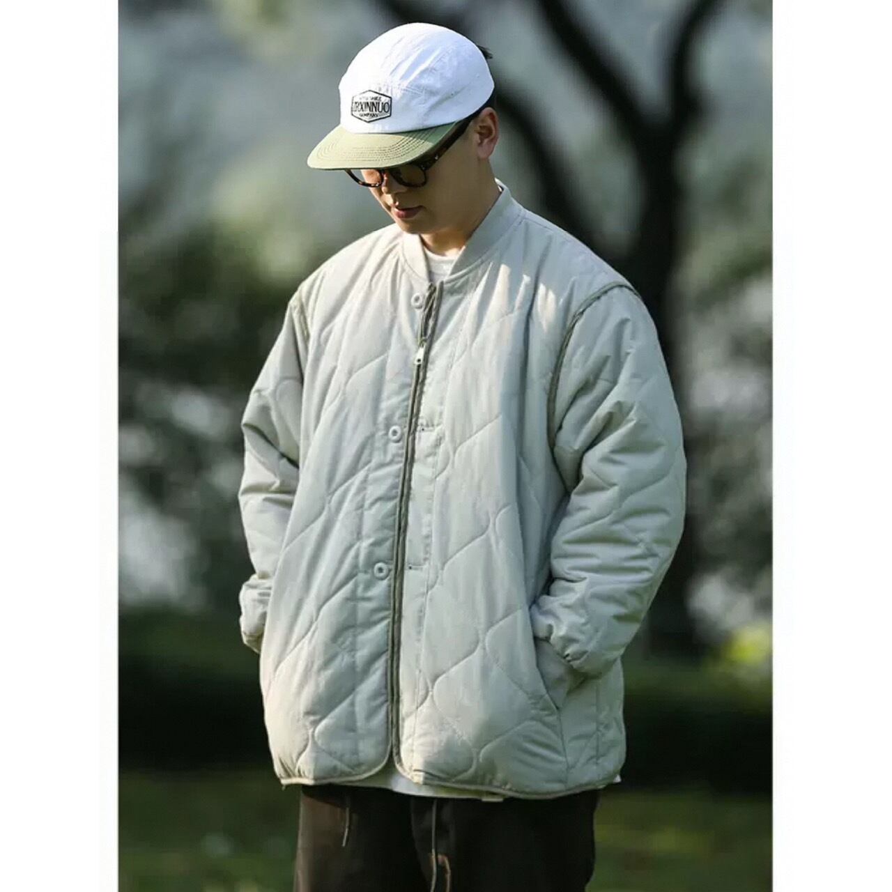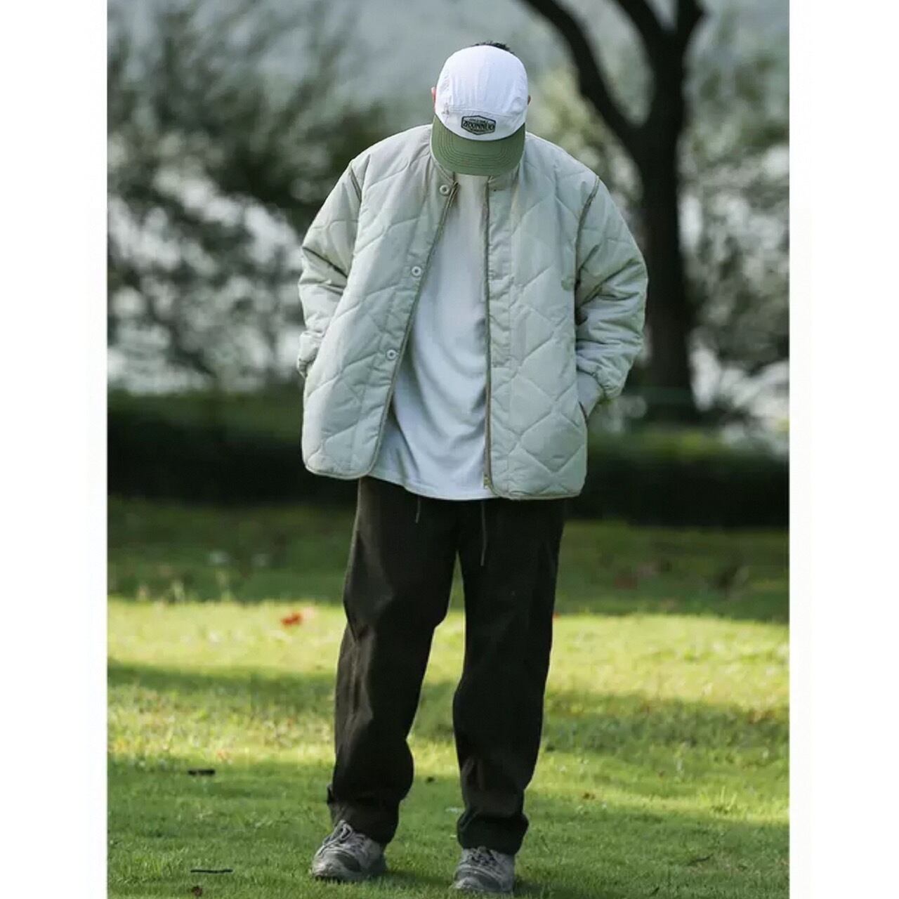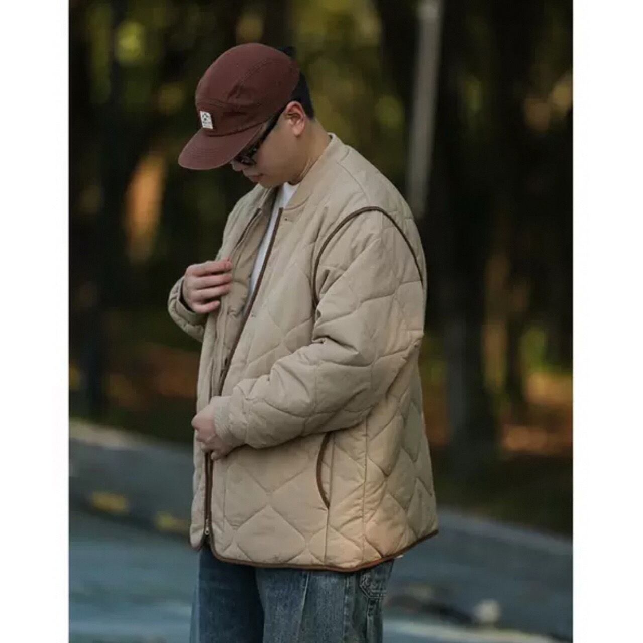 ダイヤモンドキルトが特徴的なスタンドカラーのキルティングジャケット。