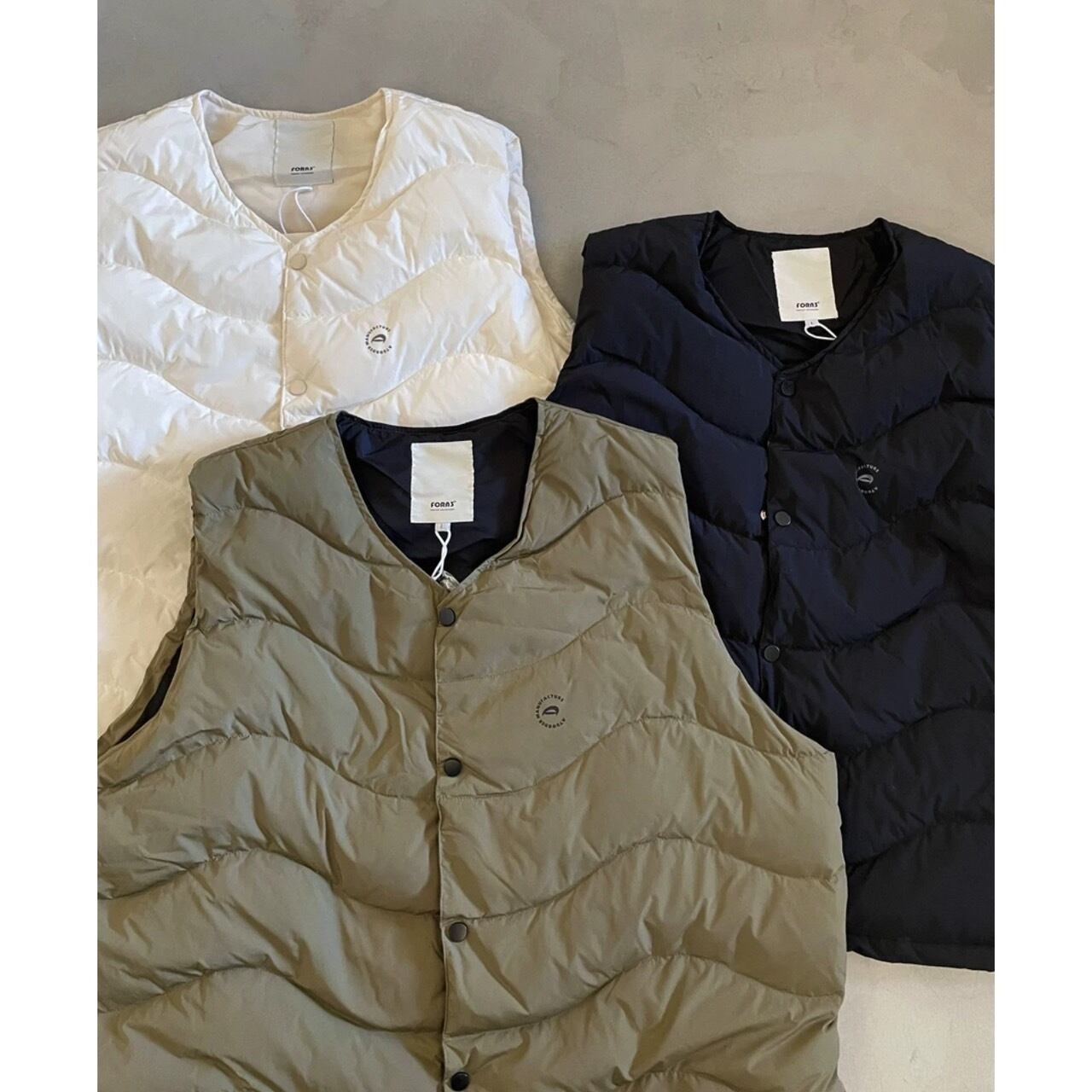 シンプルなデザインながら、キルティングの立体感が魅力的なダウンベスト。