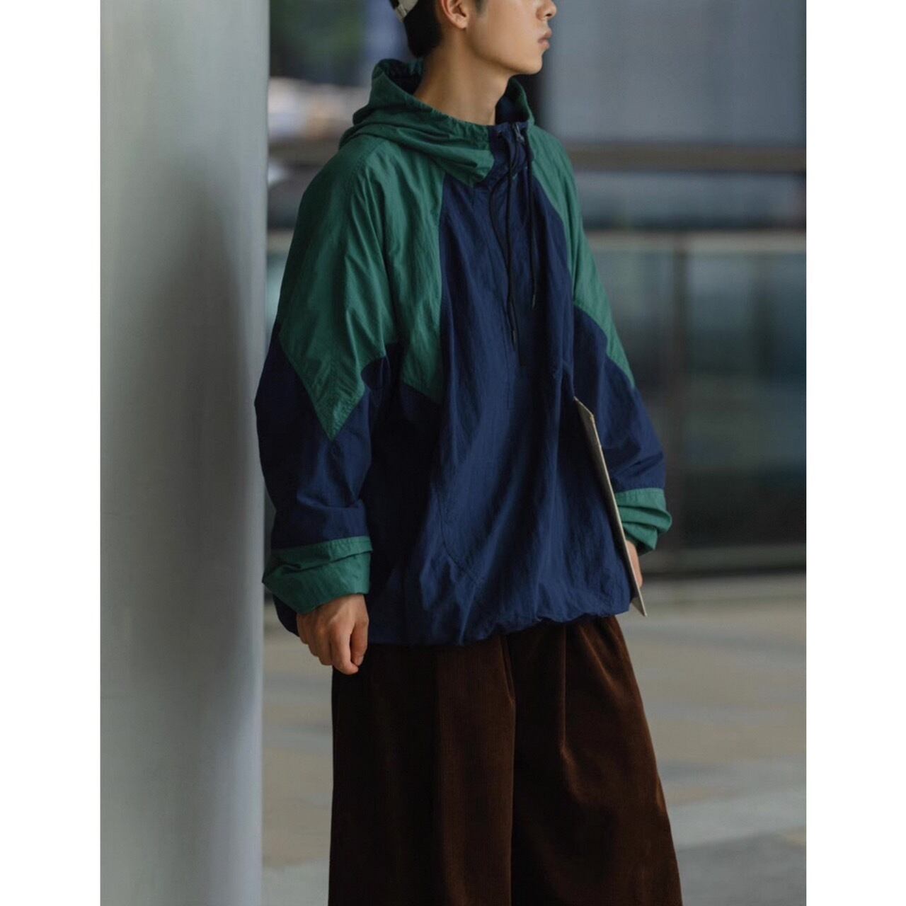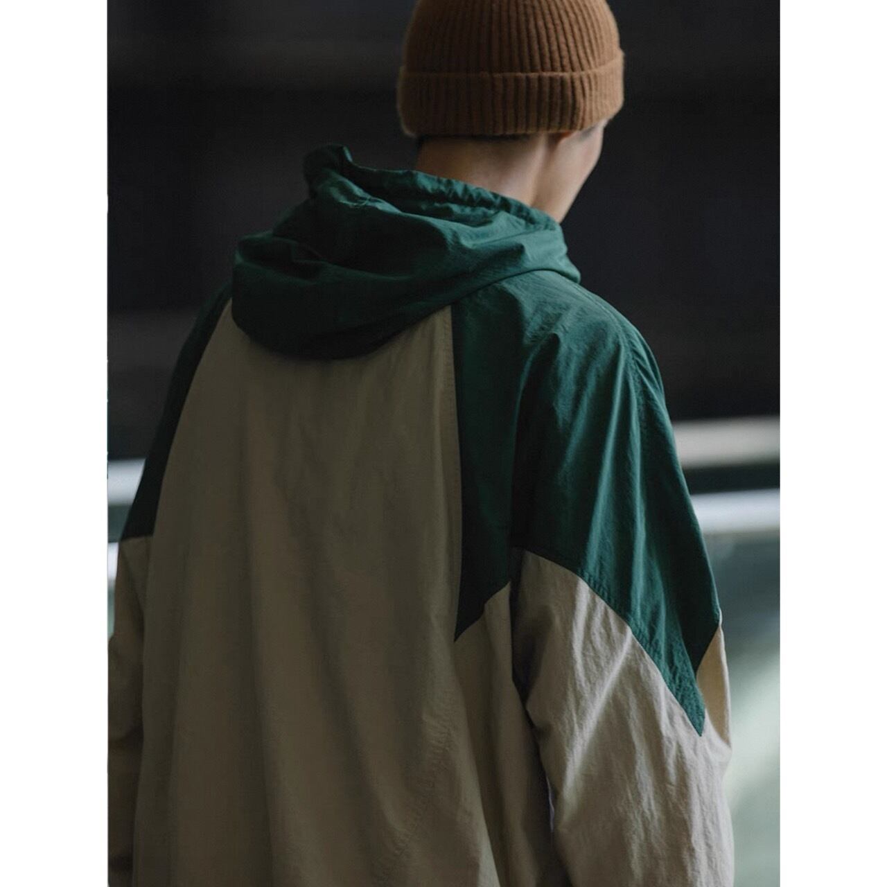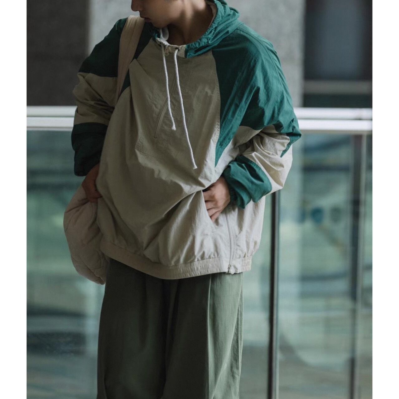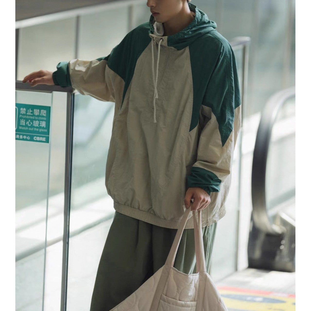 バイカラーの配色が特徴的なオーバーサイズウィンドブレーカーパーカー。