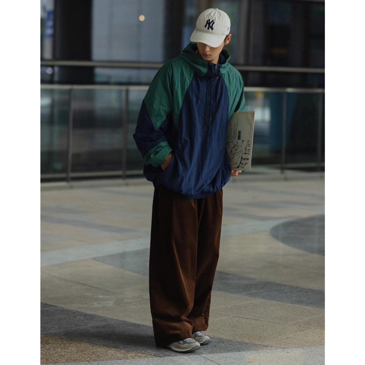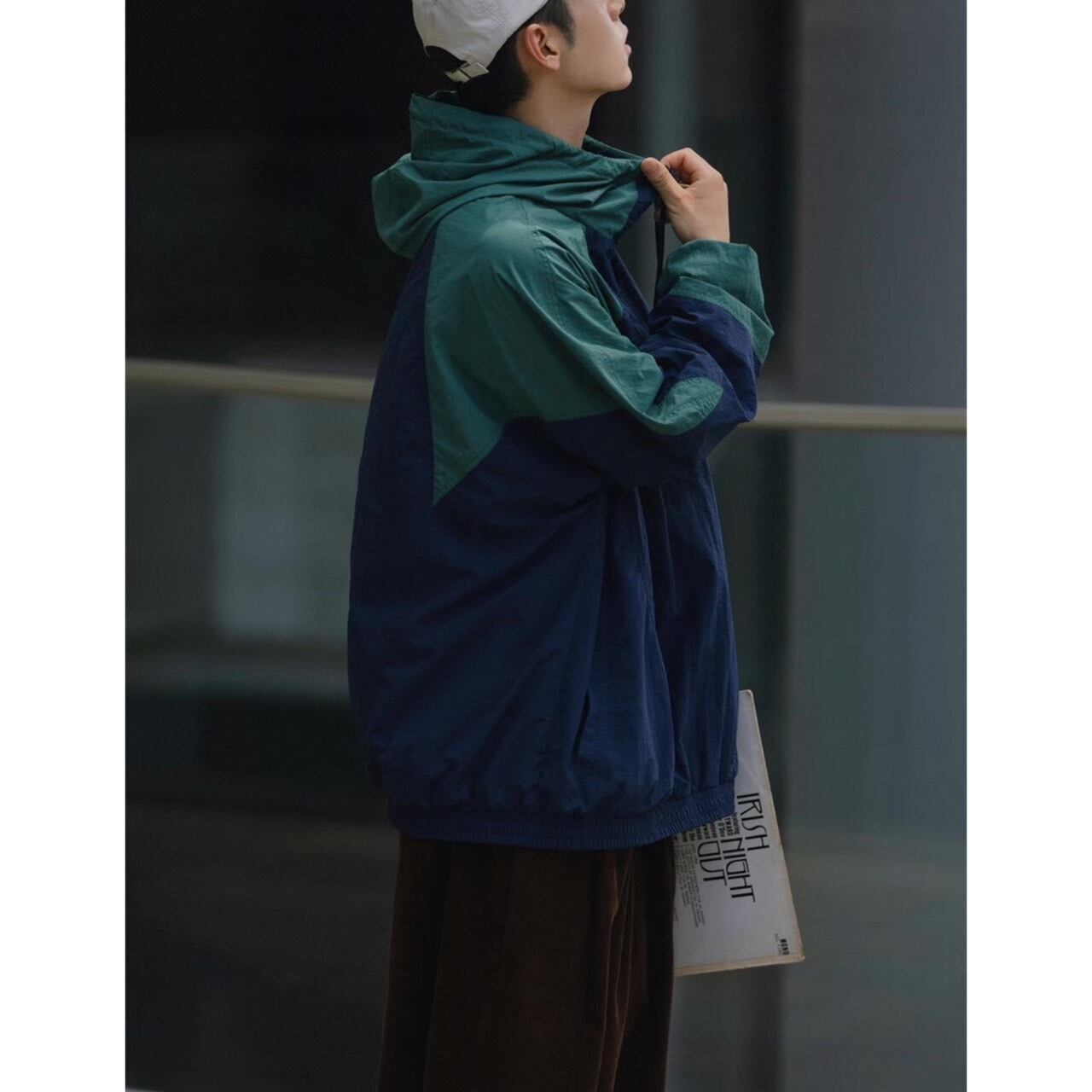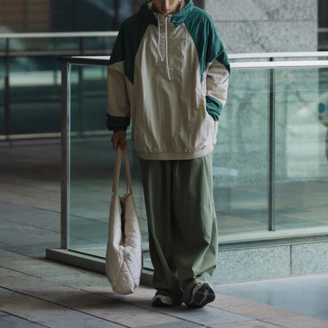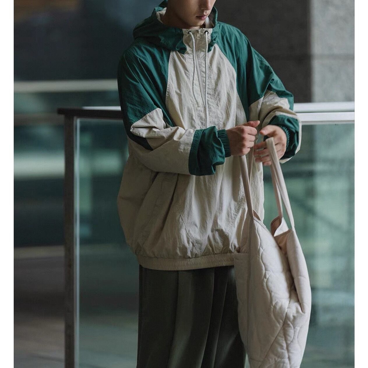 バイカラーの配色が特徴的なオーバーサイズウィンドブレーカーパーカー。