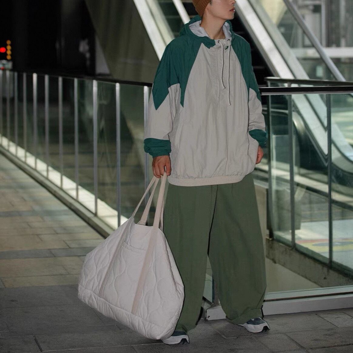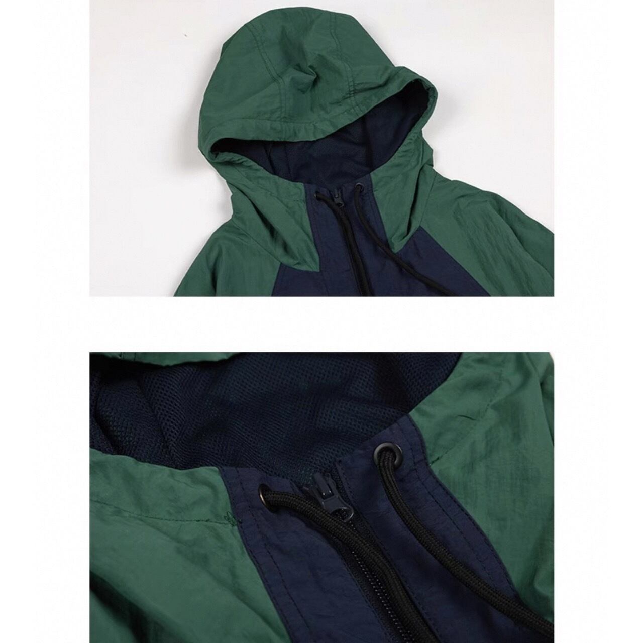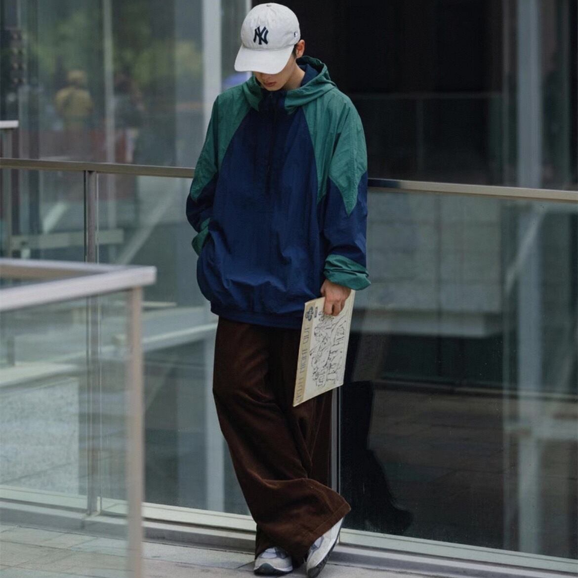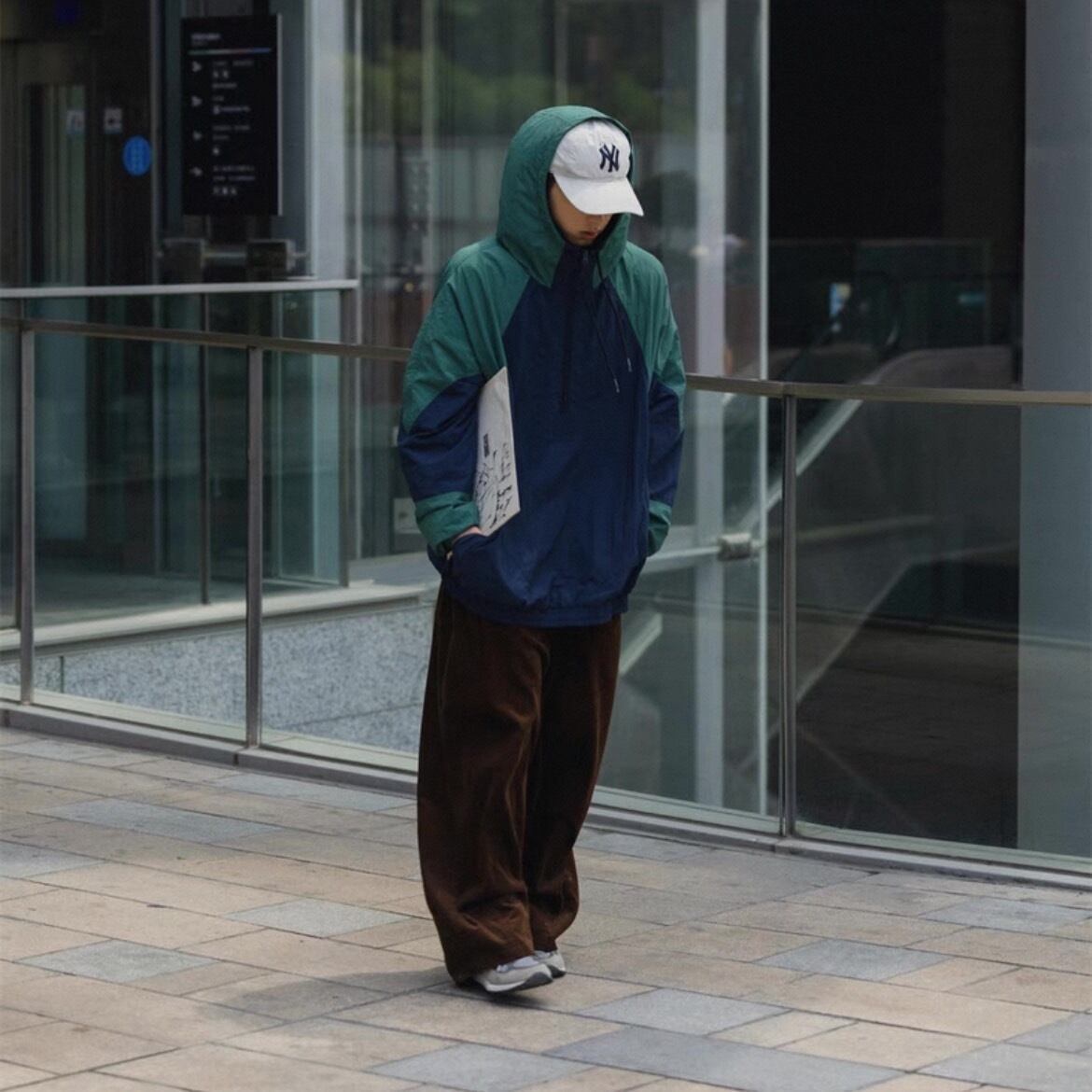 バイカラーの配色が特徴的なオーバーサイズウィンドブレーカーパーカー。