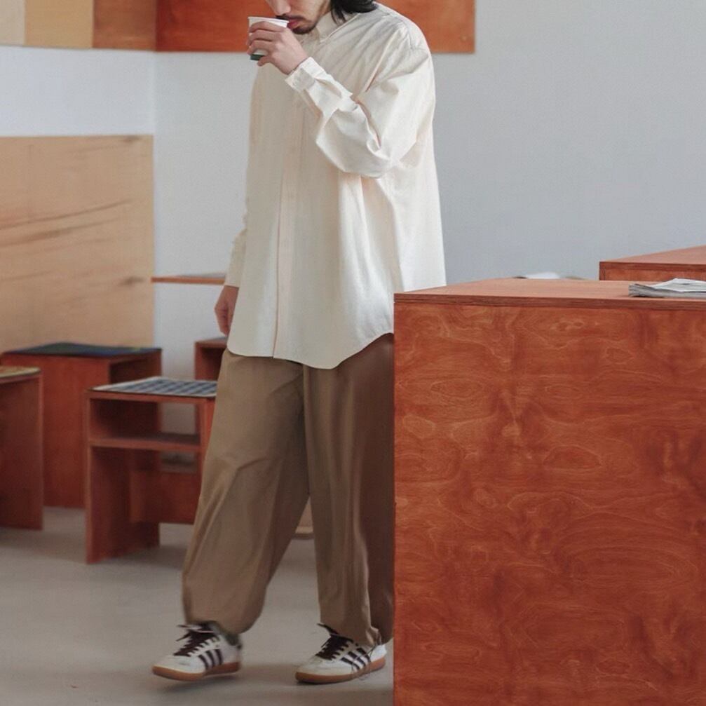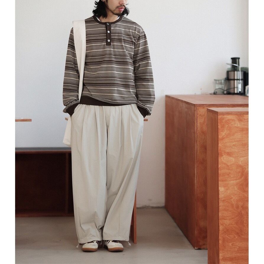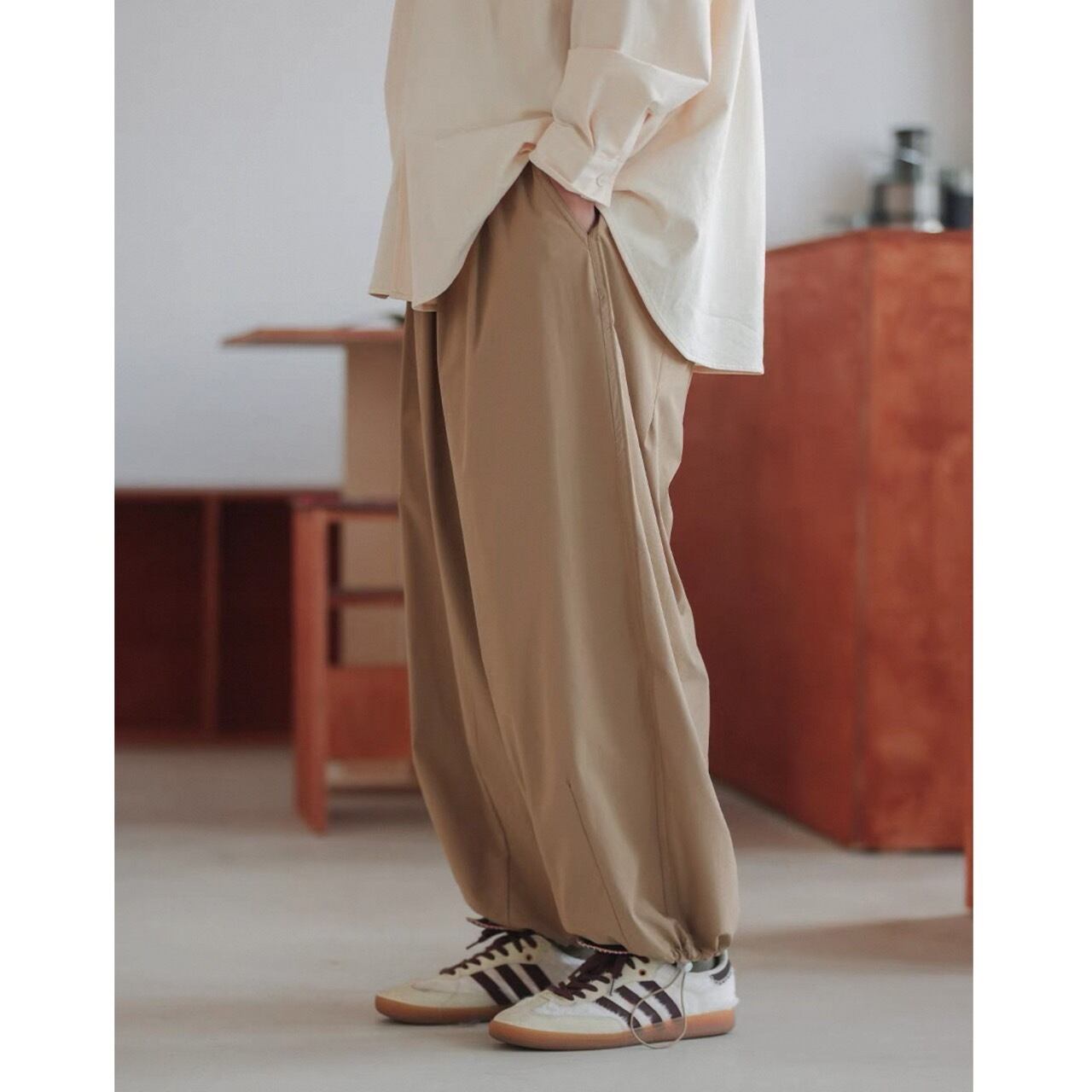 程よいボリューム感とテーパードシルエットが絶妙にマッチし、大人のリラックススタイルを演出します。