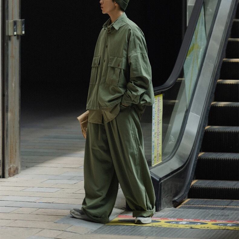 ゆったりとしたシルエットが特徴のルーズフィットワイドパンツ。
