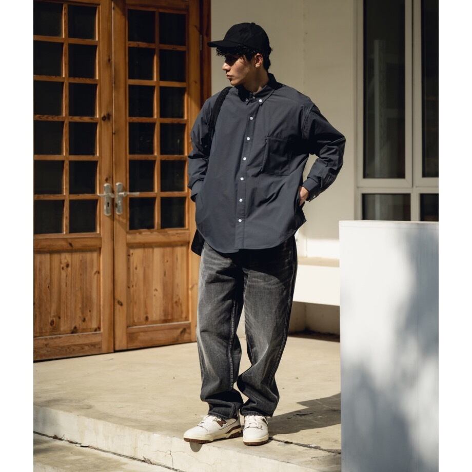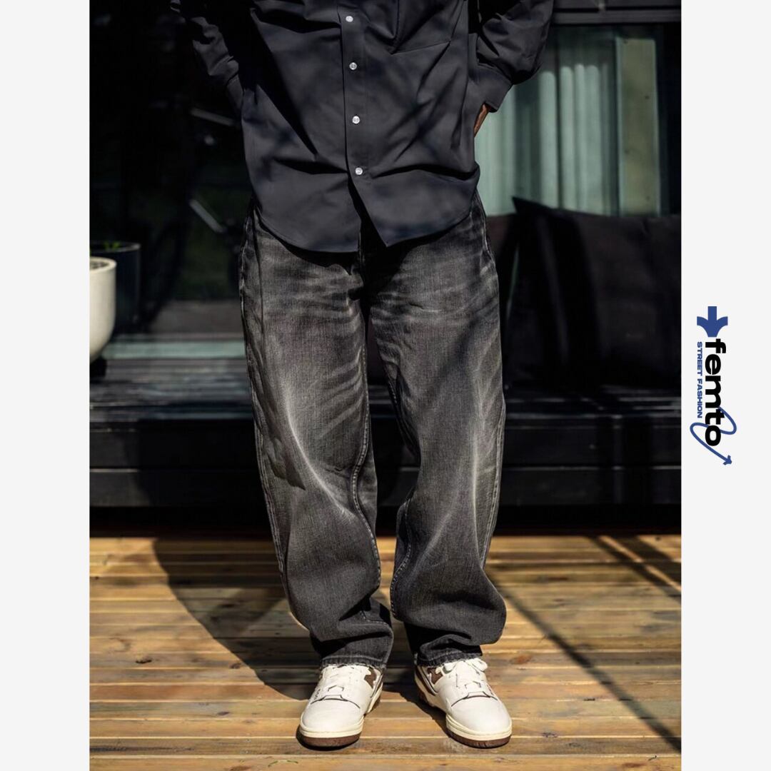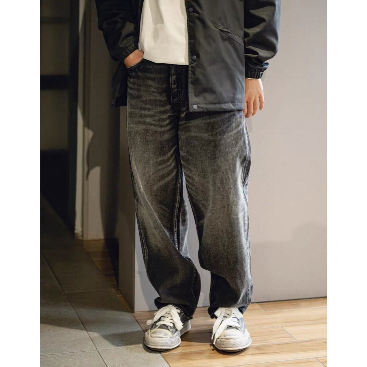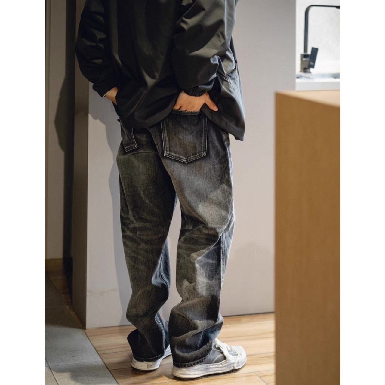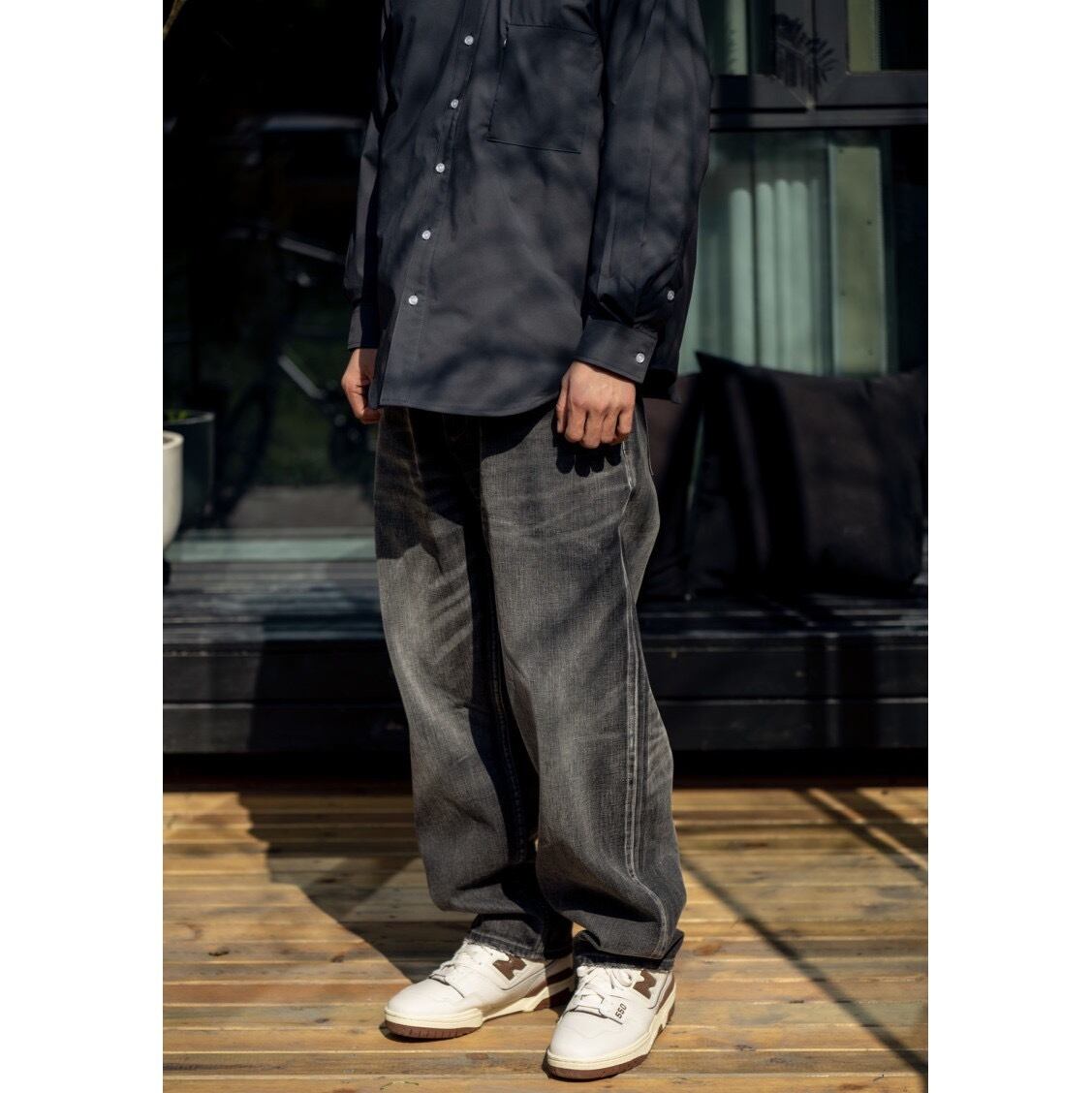 落ち着いたブラックウォッシュデニムで大人のストリートスタイルを演出。